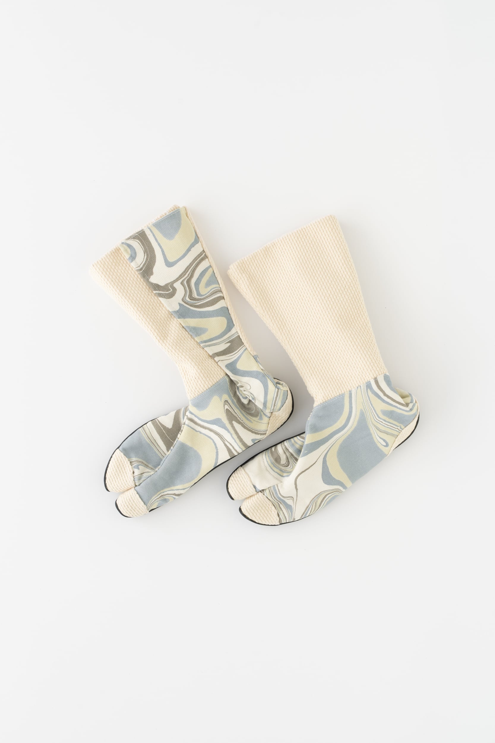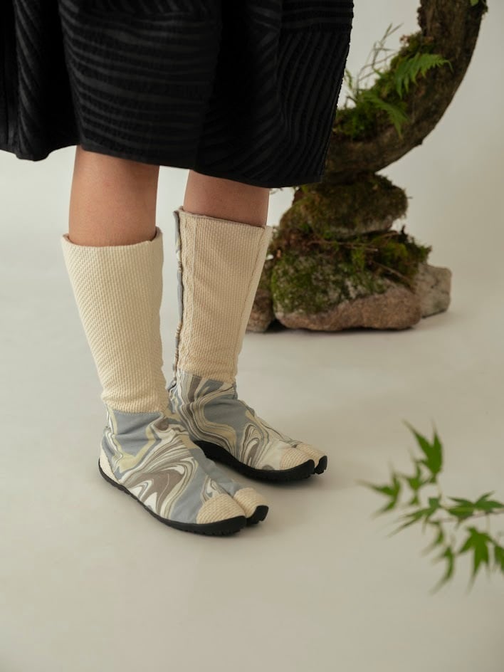 ARCHのアイコニックな墨流し染めを施すことで、地下足袋が日常で楽しめるファッションアイテムに仕上がっています。