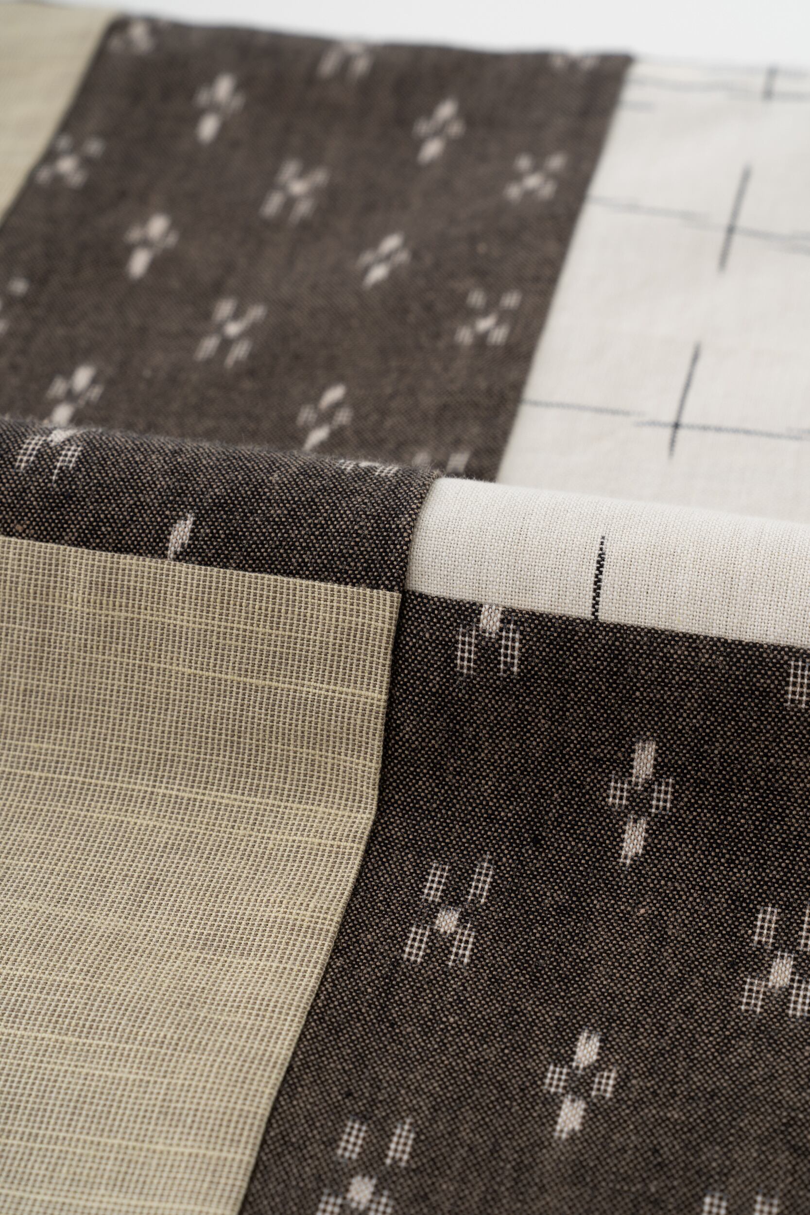 あまり布をアップサイクルして生まれた久留米絣の「パッチワークきもの」です。
