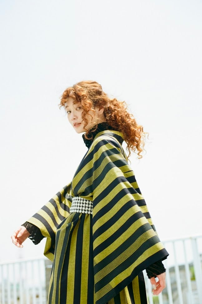 スコットランドの伝統衣装・キルトから着想を得た、大胆な十字模様のデザインです。お仕立ての際に美しい着姿となるよう、線の太さやバランスにもこだわりました。インパクトのある柄でありながら、絣糸で表現し、ウールを用い、さらに緯糸の色のバランスを工夫することで、柔らかな雰囲気も併せ持っています。また、ウール糸を使用することで、季節感のある風合いに加え、保温性と快適な着心地を実現しました。