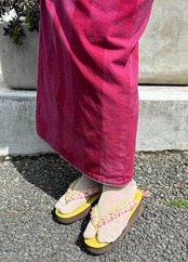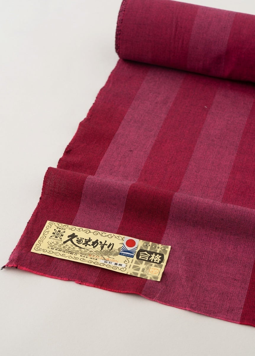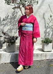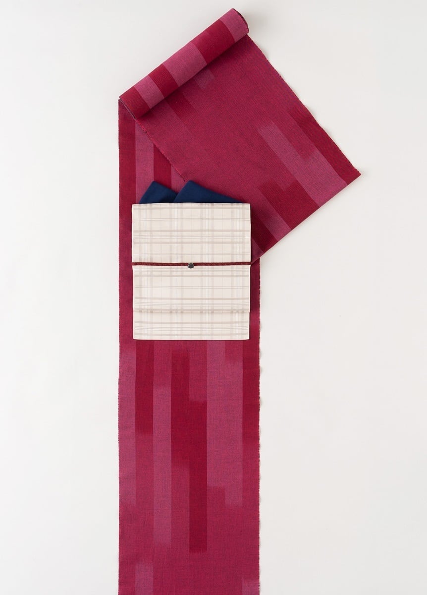 木綿の吸湿性と保温性を併せ持ち、単衣仕立てにすることで春・秋・冬とロングシーズンでお召しいただける木綿着物です。織物は久留米を中心とする福岡県南部筑後地方で生産される日本三大絣の一つ「久留米絣」。水洗いと天日干しによるしっかりとした生地は、丈夫でコシがあります。絣とは、糸を染める際に「くくり」という作業で染まらない部分を作り織り上げることでさまざまな柄を表現する技法です。絣で表現される文様は、精微な作業ながらわずかな輪郭のずれが「ぼかし」という味を引き出し、人のぬくもりを感じさせてくれます。また絣織りならではのデザイン性は、ワンランク上の着姿を演出。きちんと感を出すには名古屋帯、気軽に色々な結び方を楽しむには半幅帯がおすすめです。