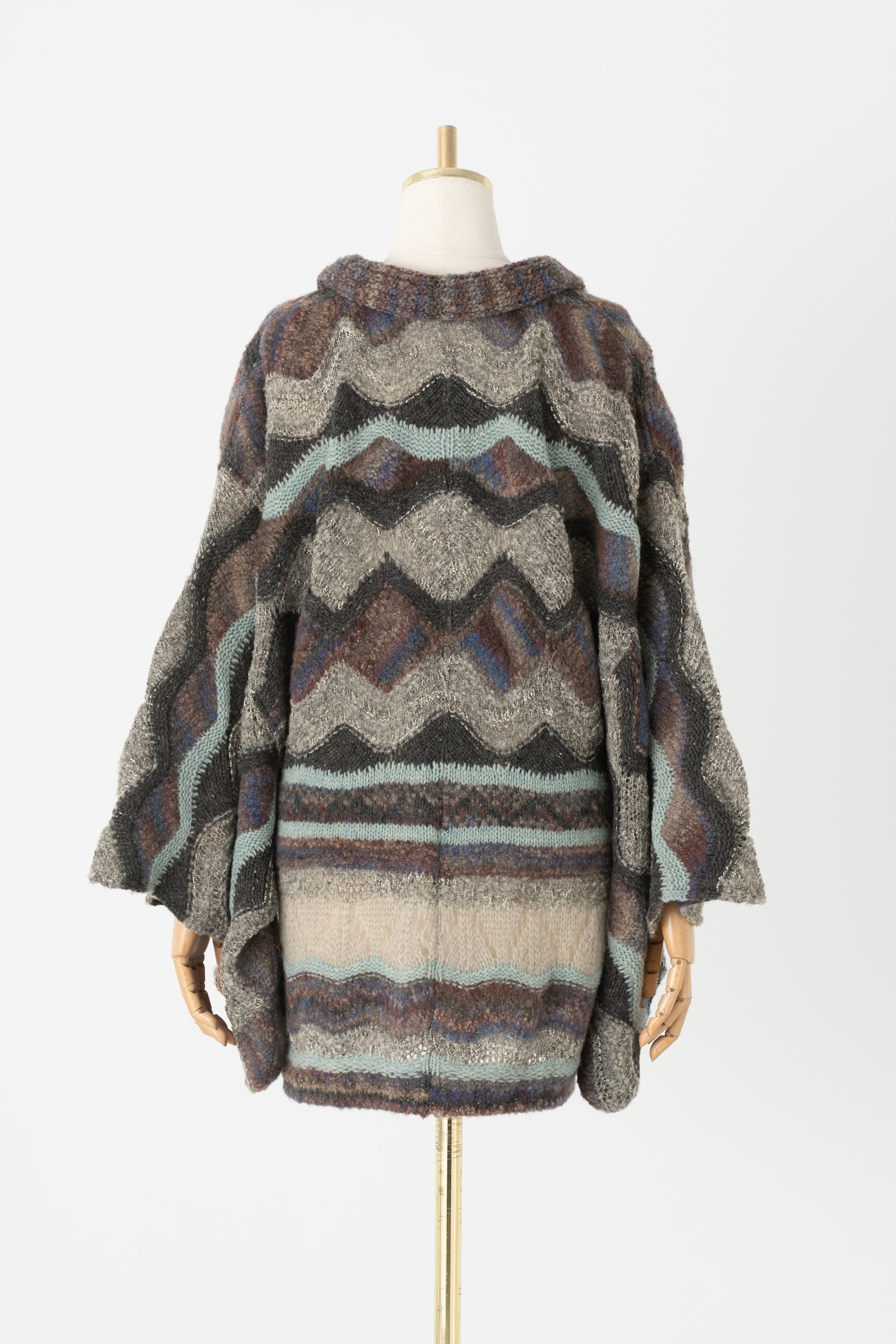 米富繊維と製作した、伝統的なフェアアイル*¹ニットを思わせる、アウターとしても着用できる羽織。