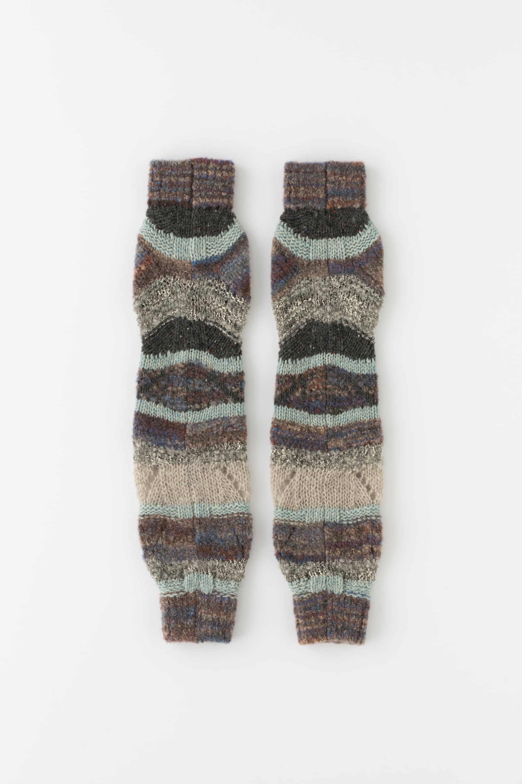 細やかな柄ゆえ、帽子やミトンなどの小物に用いられることが多いフェアアイルニットですが、今回はアームウォーマーとレッグウォーマーの兼用アイテムも展開します。