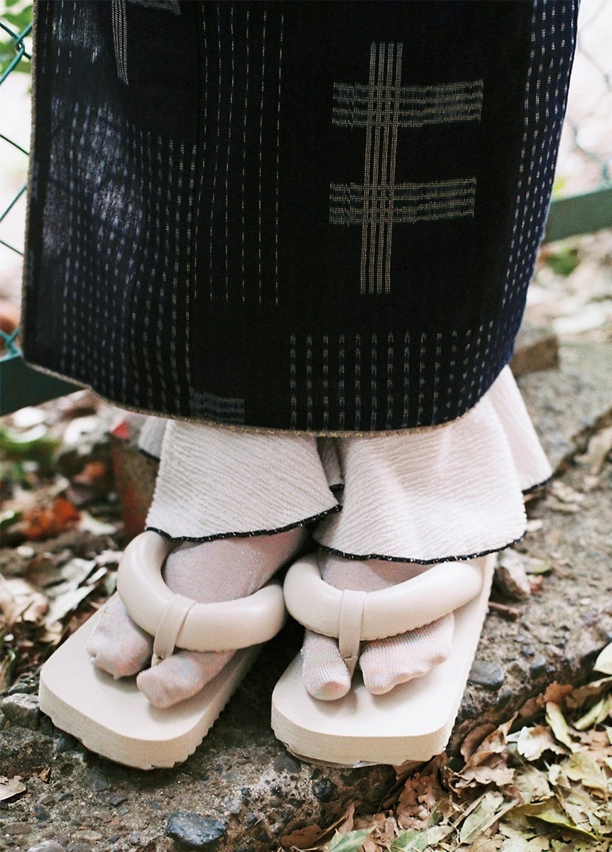 ブランド名は日本語の「夢」に由来しており、日本独自の文化にインスピレーションを受けた伝統的かつ未来的なデザインは、浴衣やきものとの相性も抜群。足元から個性を出せるおすすめの一足です。