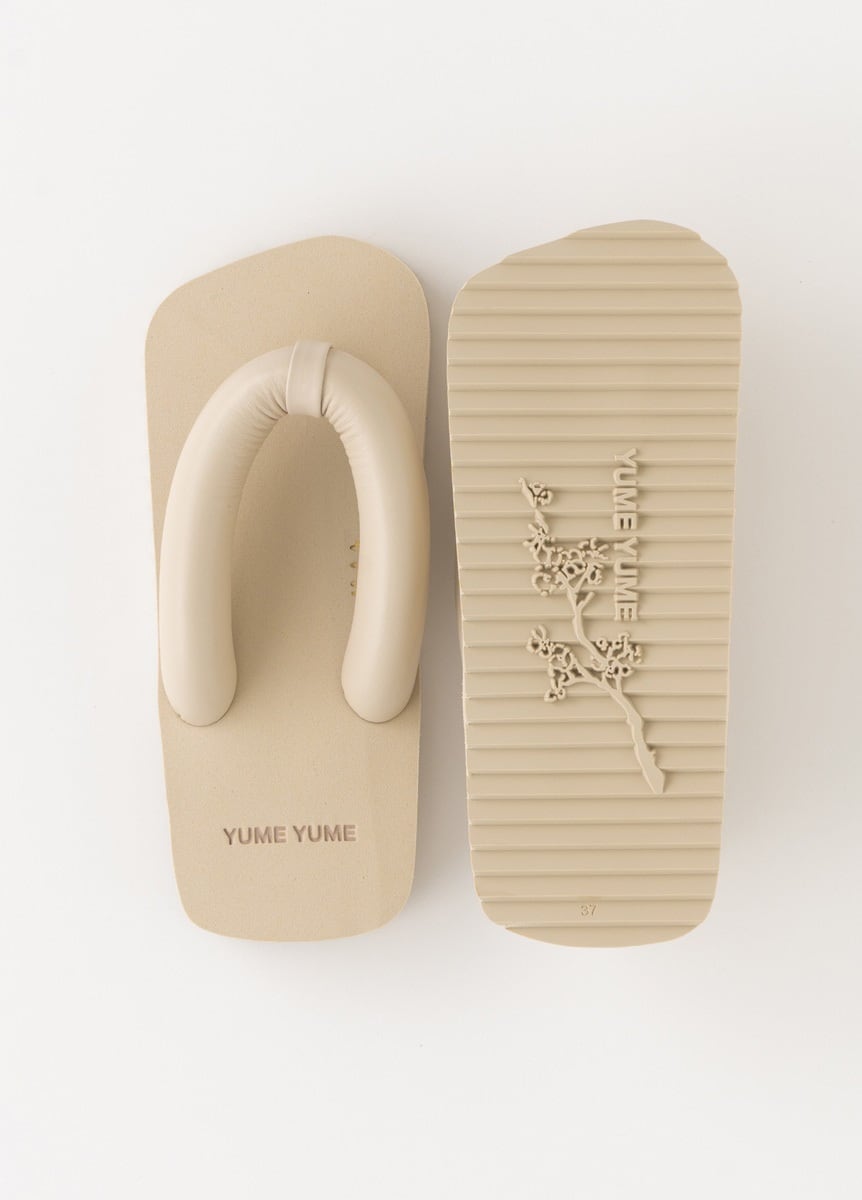 ブランド名は日本語の「夢」に由来しており、日本独自の文化にインスピレーションを受けた伝統的かつ未来的なデザインは、浴衣やきものとの相性も抜群。足元から個性を出せるおすすめの一足です。