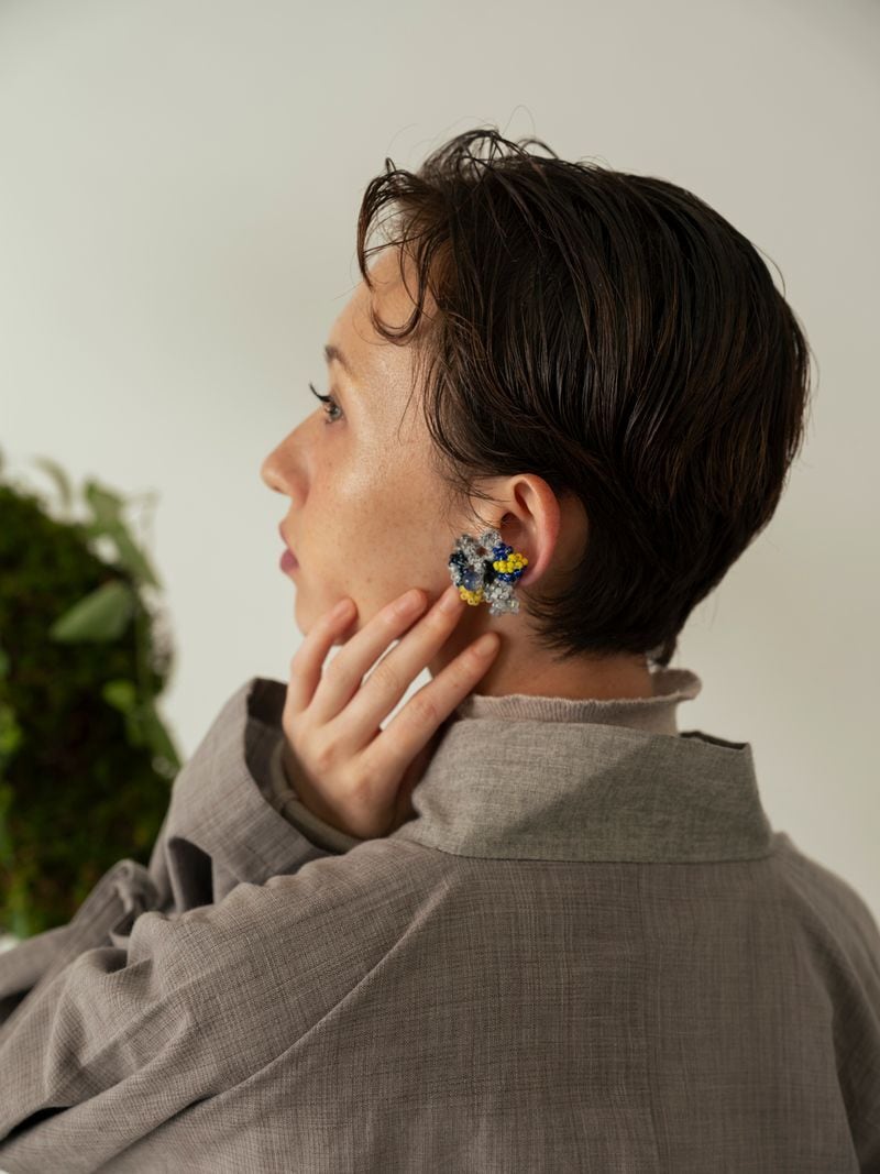 松煙・弁柄・柿渋といった天然染料で糸を染め上げ、小千谷地域に特徴的な「乱絣」を織り込んだ、“さんち”の風土をまとう一着です。
