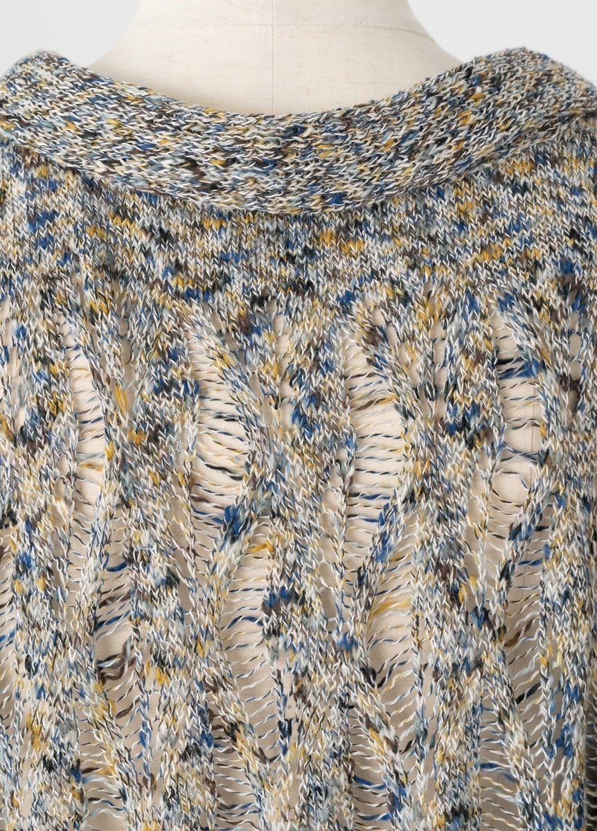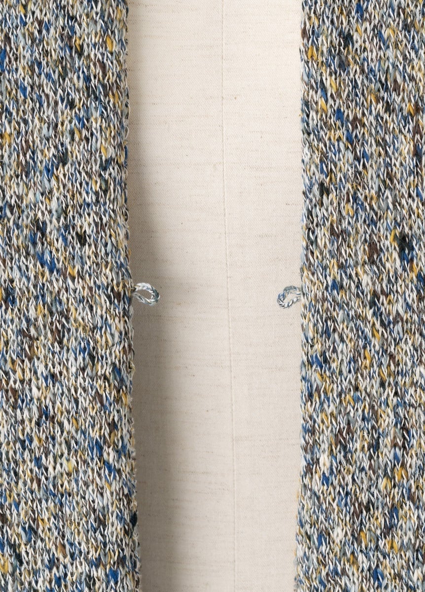 様々な形状の糸を扱うことができる編み物の特徴を生かし、透かし編みを用いた薄手の羽織を実現しました。