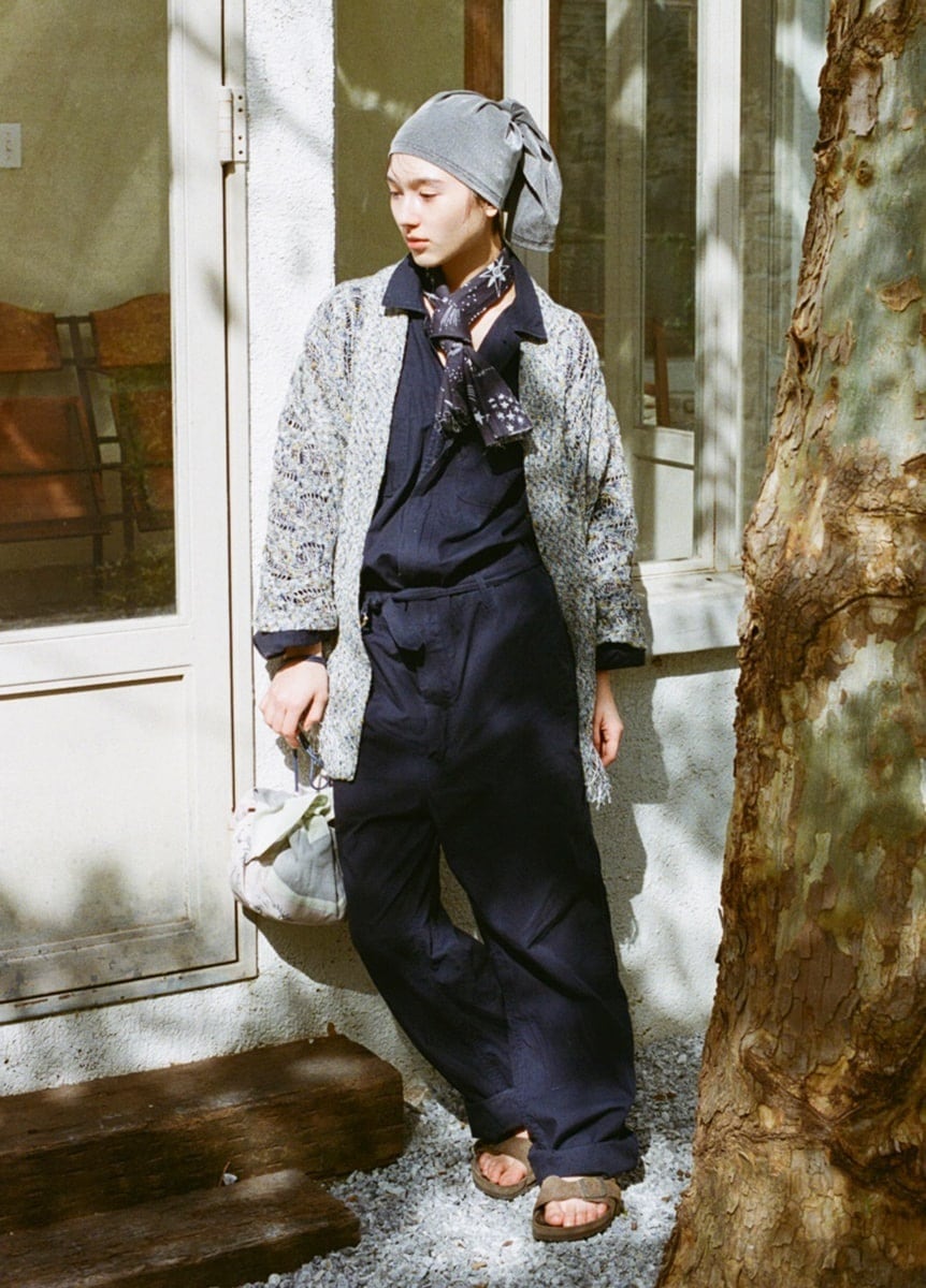 This knitted haori was created in collaboration with the long-established knit manufacturer Yonetomi Fibers. By taking advantage of knitting’s ability to handle yarns of various textures, we achieved a lightweight, openwork design that’s perfect for summer.