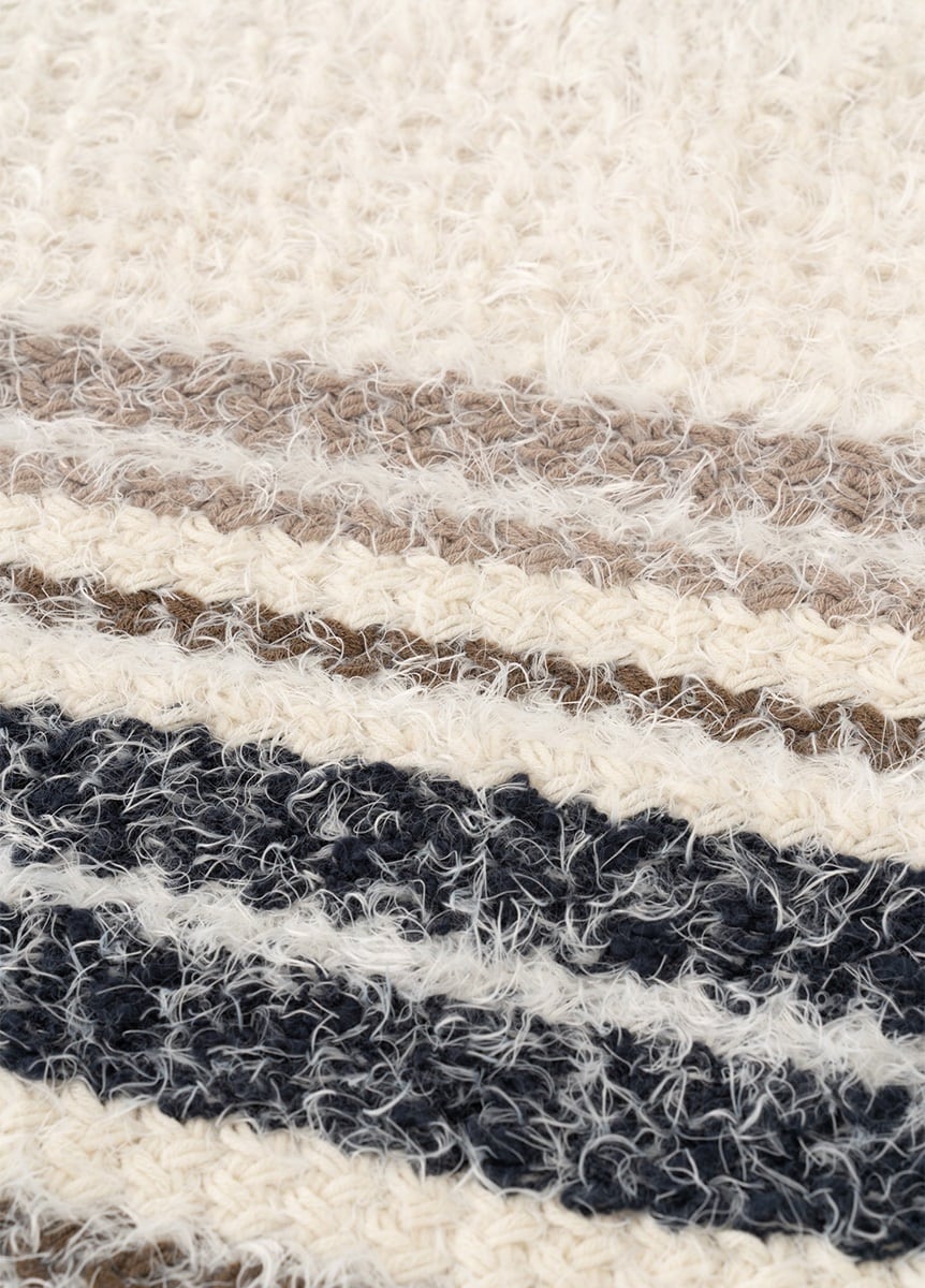 バスケットのようなざっくりとした編み地のため、真夏以外の3シーズンでお楽しみいただけます。ニットならではの毛足の長い糸や、ポコポコとした糸の表情が楽しめる生地感となっています。