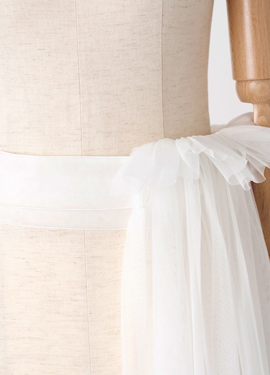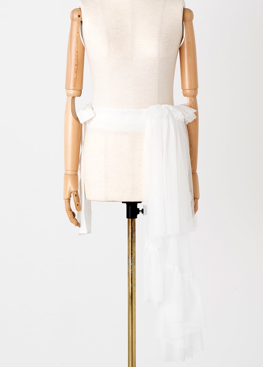 結ぶと腰から垂れるしごきの可愛さを、リボンとチュール生地で表現しました。