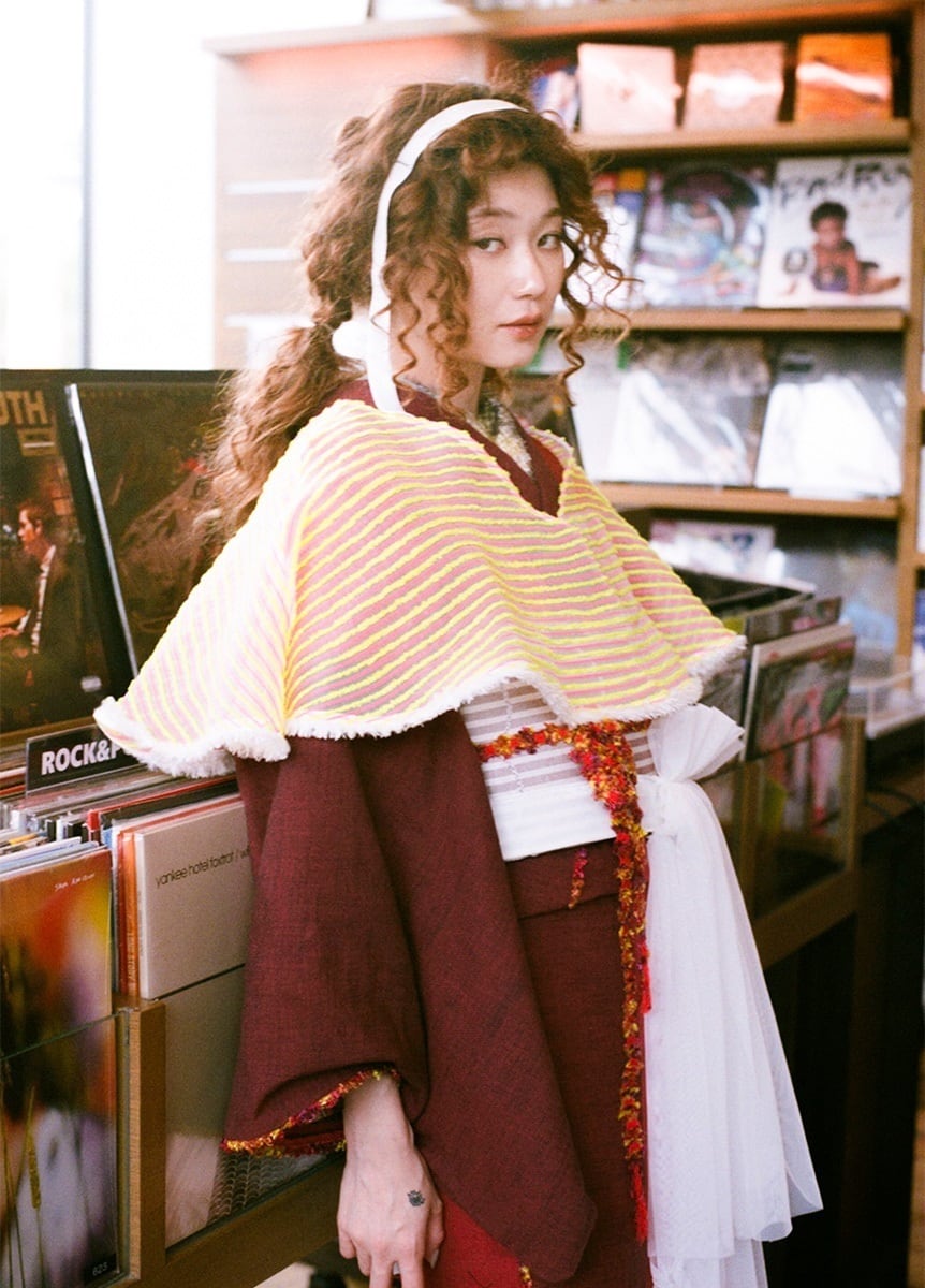 リボンとチュールはお好みの位置に移動ができるので、デニムや対丈きものなどに合わせたプラスワンアイテムとしてお楽しみください。