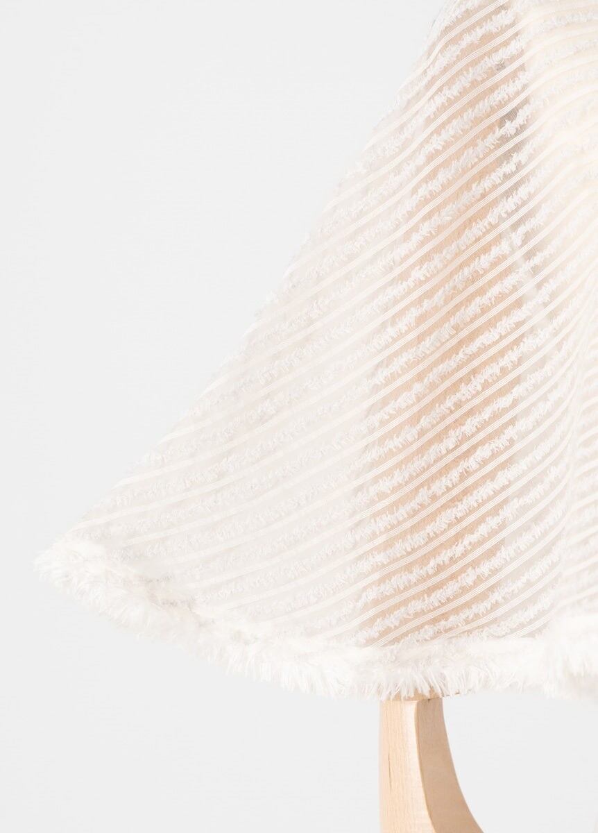 創業128年を迎え、世界的メゾンからも信頼される米沢織の織元の方と共に製作しました。イエローのファーが織り込まれた贅沢なシルクオーガンジーを用いることで、ポップな印象に対し、華やかさや上品さも兼ね備えています。オーガンジーの透け感×ファーの組み合わせは、季節を問わず、幅広い用途でお使いいただけます。