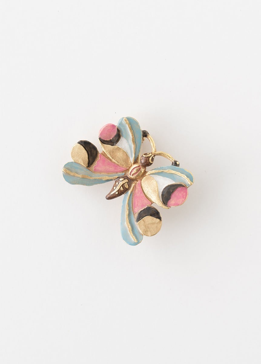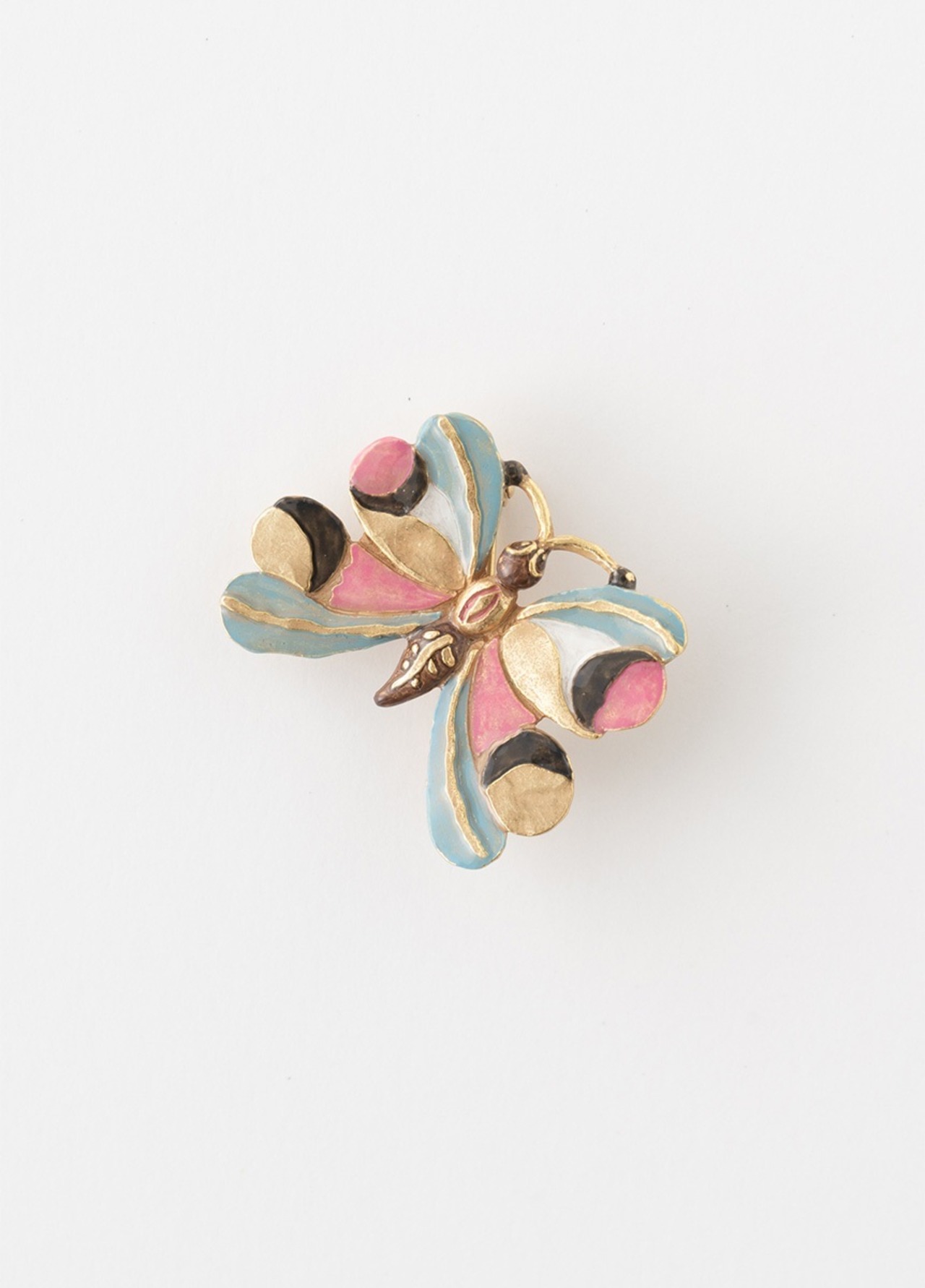 日本の職人が手作業で型を作り、一点一点染色を施しています。カラフルな蝶々は小ぶりながらアクセントに。ブローチ金具ですので、帯留だけではなくお洋服やハットなど、様々なアイテムに付けて楽しめます。