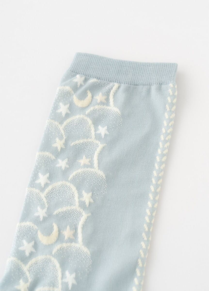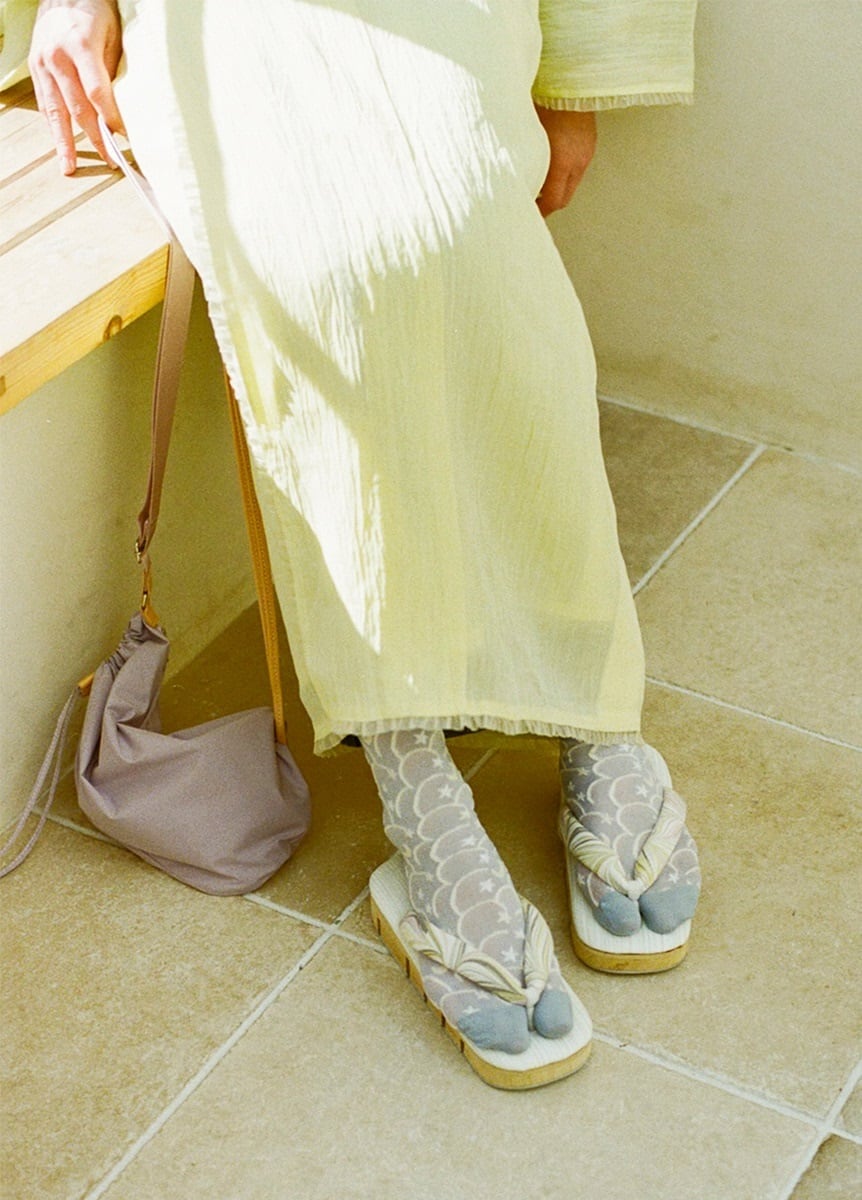 特徴的なデザインとして、足首に連なるラインや、2025年春夏のテーマに合わせた星を連想させる柄が施されています。和服との相性はもちろん、洋服にも合わせやすく、日常的に楽しんでいただけるアイテムです。
