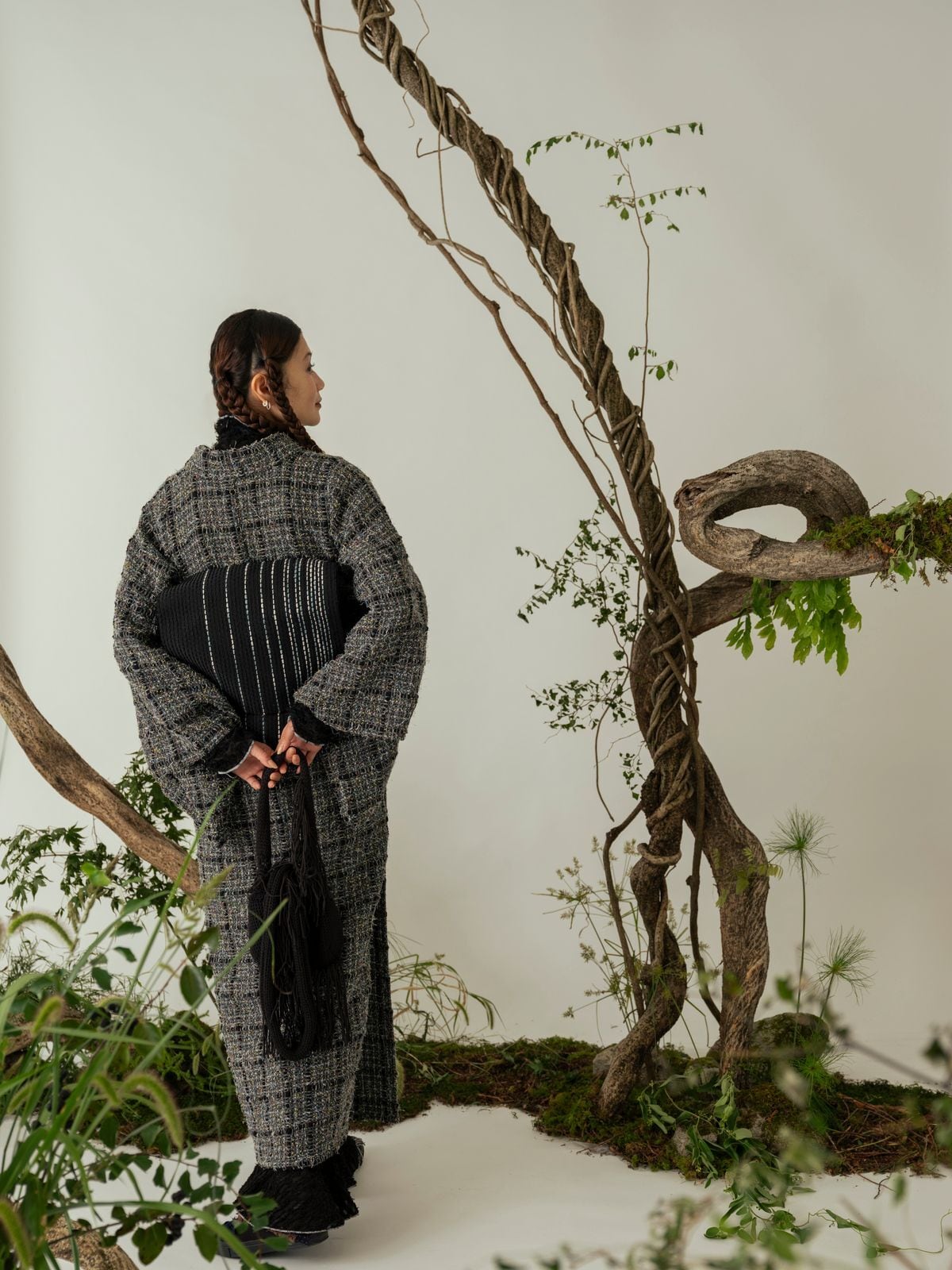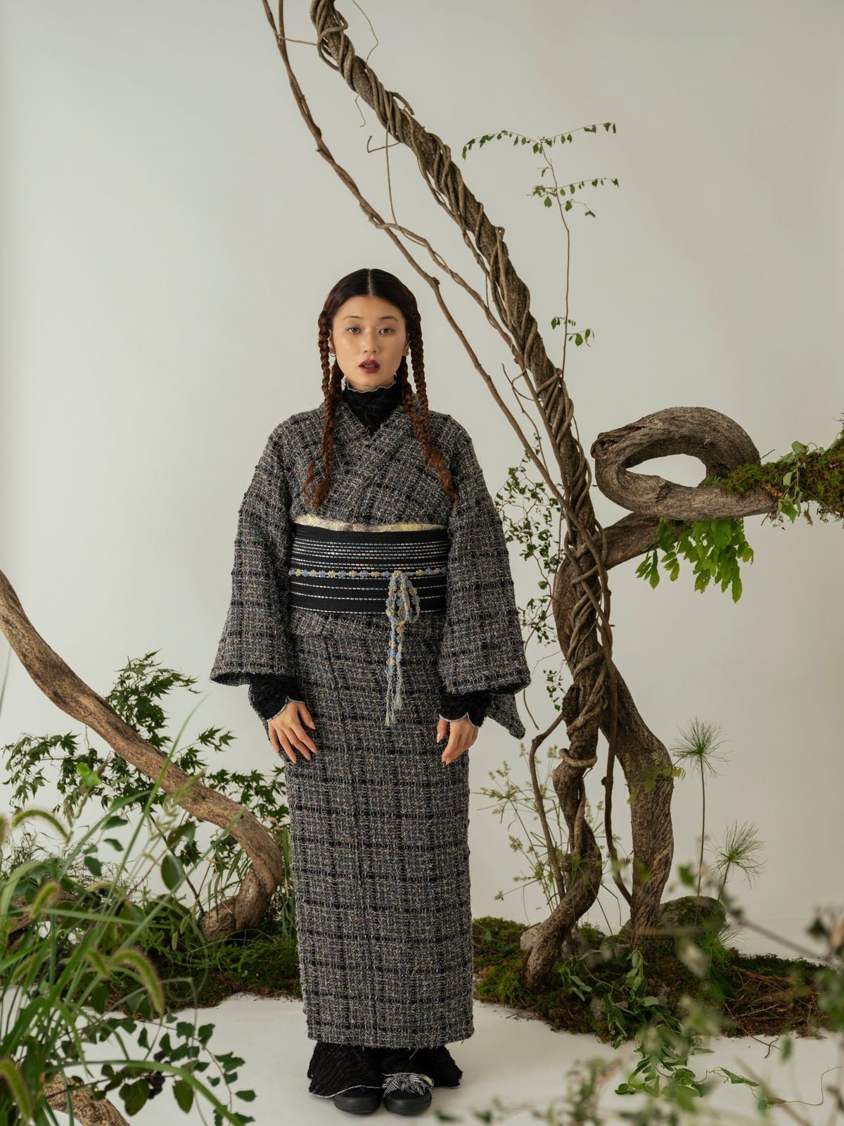 現在では、手しごとの風合いを大切にしたツイードの一種として発展し、日本でも岩手や山形など、羊の飼育が盛んな土地に根づいた産業として受け継がれています。ARCHが大切にする“その土地ならではの手しごと”の魅力に光を当て、世界を見渡す視点を一枚のきものに宿しています。