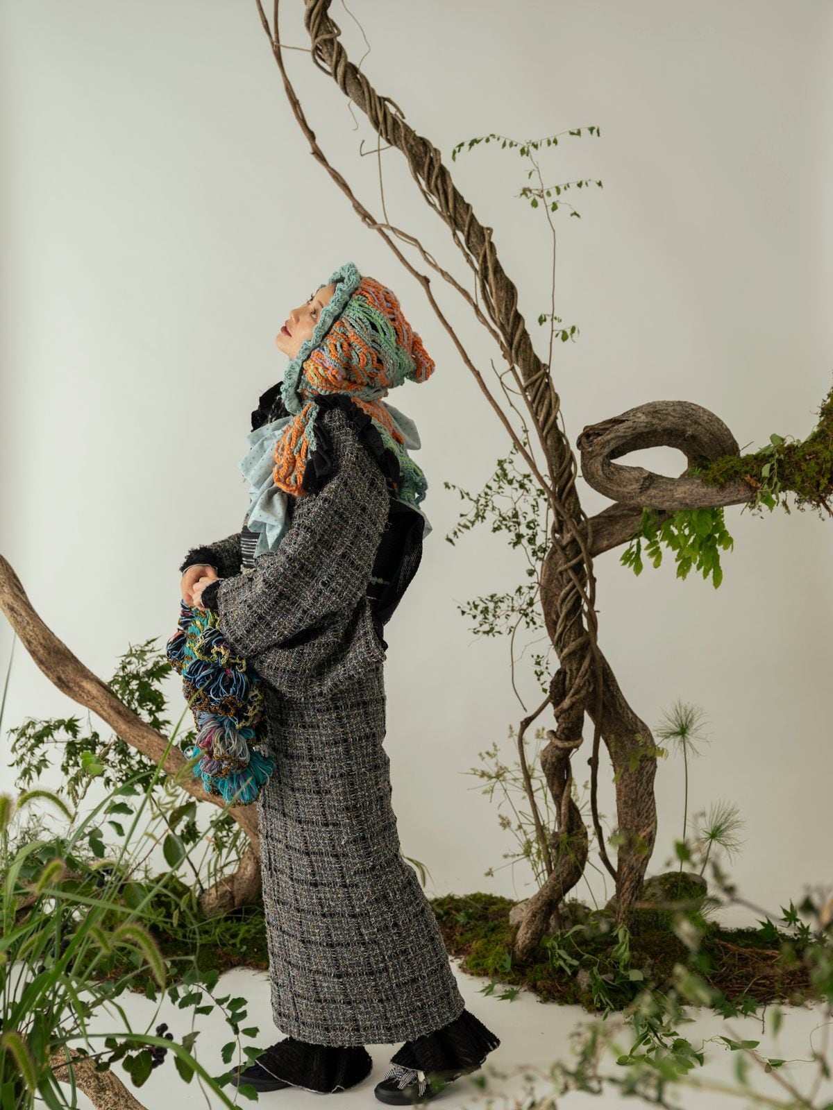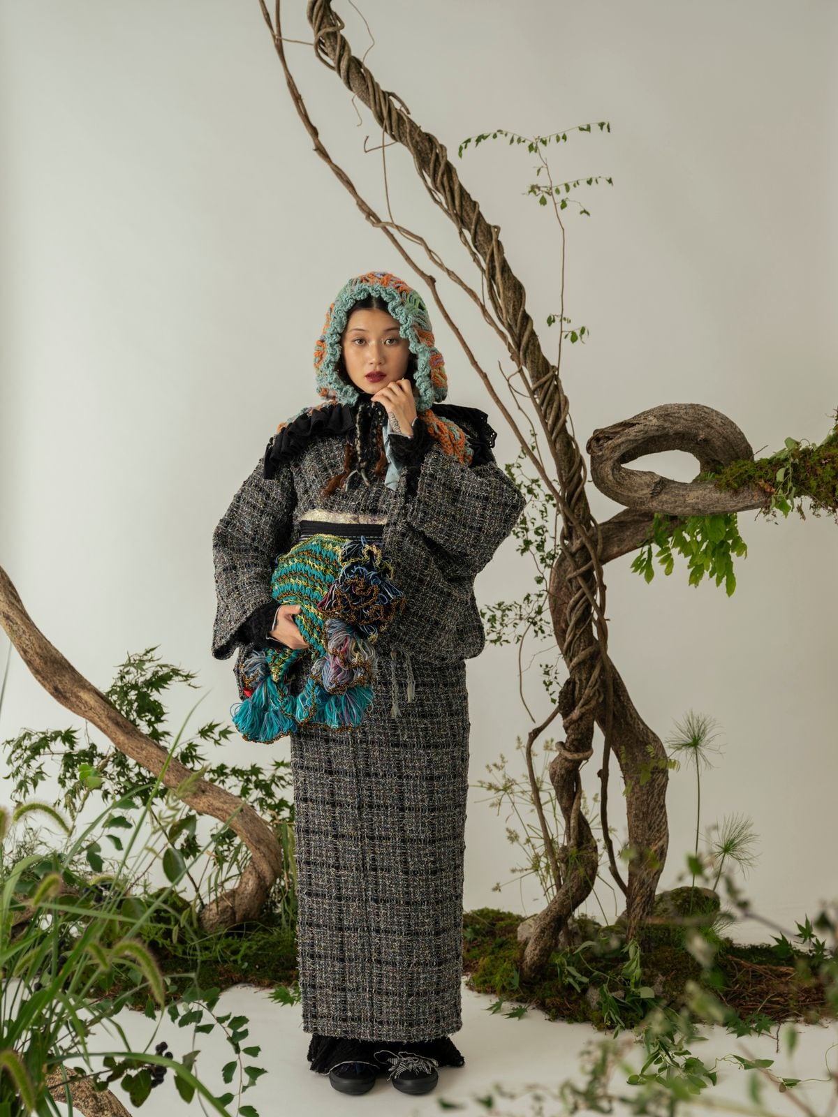 ジャケットなどに用いられるツイード生地を使用したきものと、きものに合わせるコート「道中着」を製作。