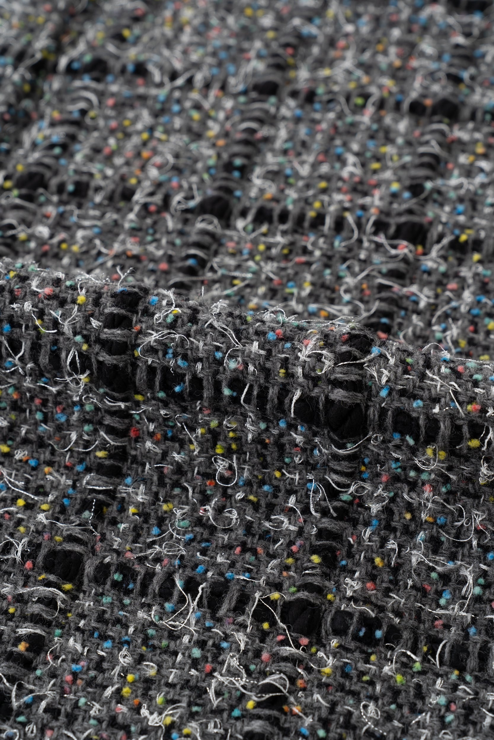 ホームスパンの手織りの風合いを守り続けているからこそ、糸自体にデザイン性をもたせた特殊な糸による織物づくりが叶いました。数センチ単位で多色染めを施した糸には、一本一本にまで人の手が加えられています。こうした糸で織り上げることで、ホームスパンならではの奥行きある表情が生まれました。