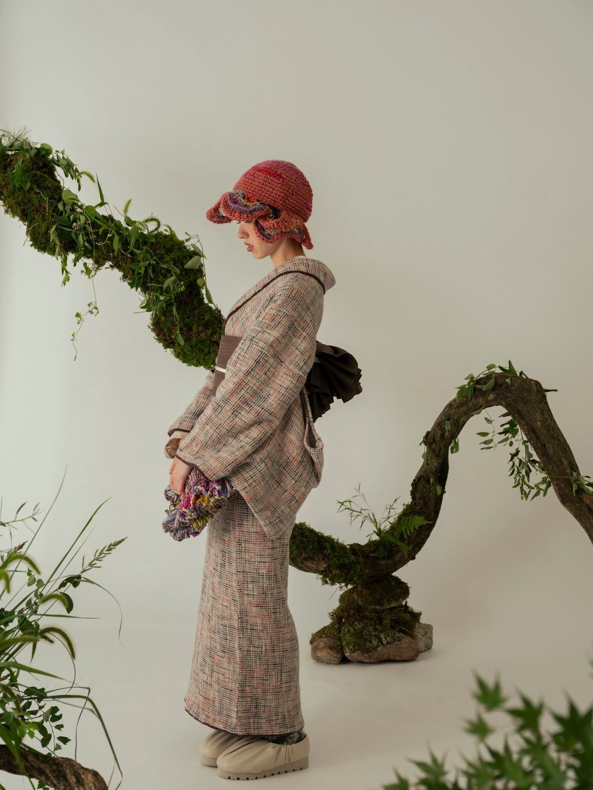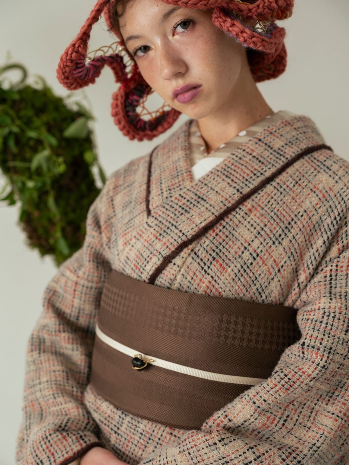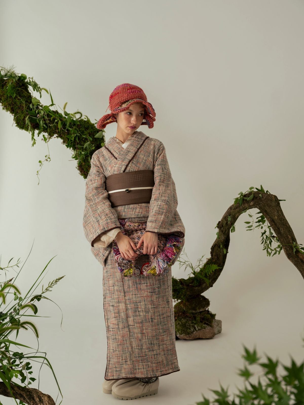 現在では、手しごとの風合いを大切にしたツイードの一種として発展し、日本でも岩手や山形など、羊の飼育が盛んな土地に根づいた産業として受け継がれています。ARCHが大切にする“その土地ならではの手しごと”の魅力に光を当て、世界を見渡す視点を一枚のきものに宿しています。
