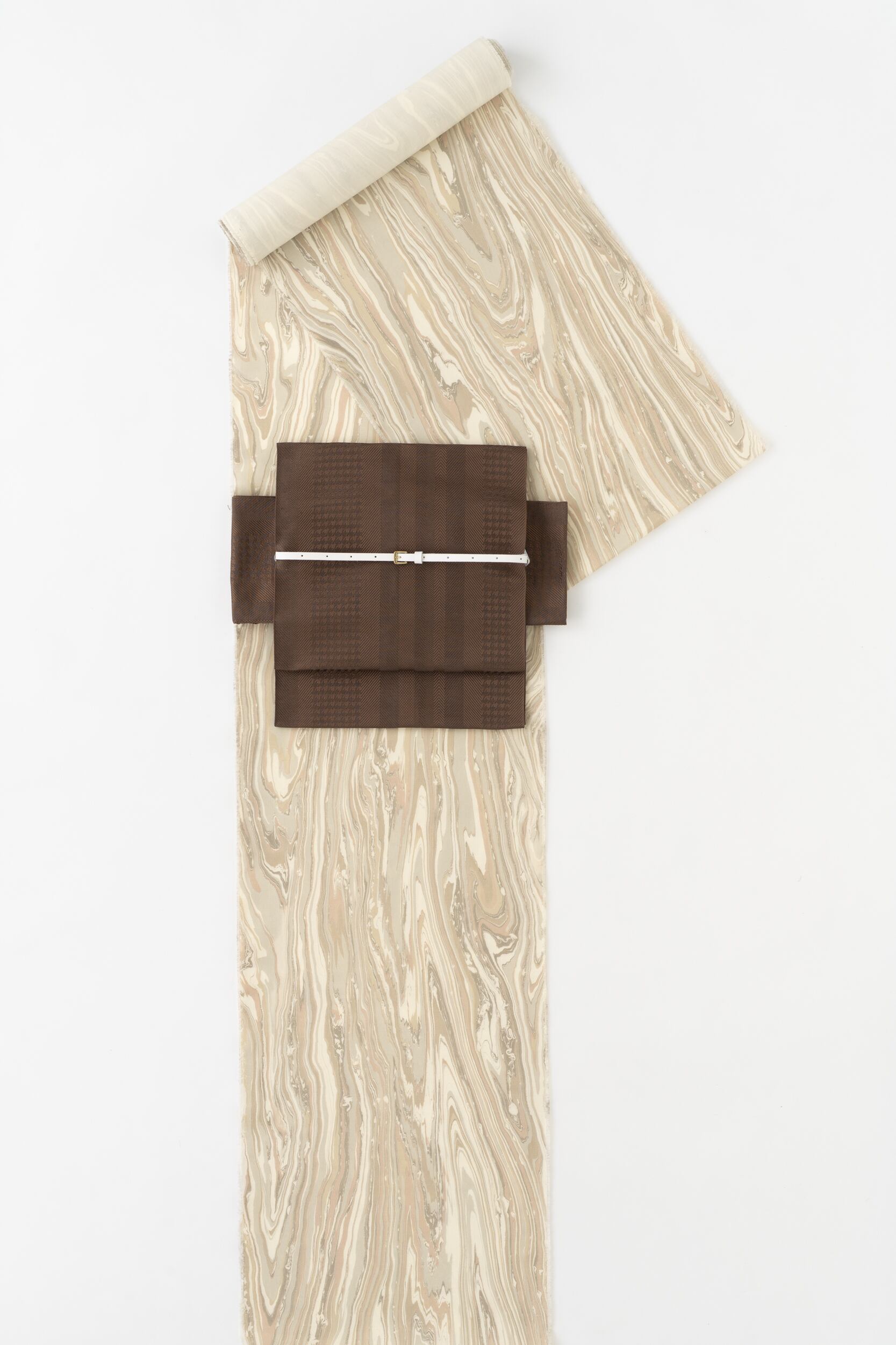 柔らかな風合いと穏やかな配色が調和し、総柄でありながらも上品で落ち着いた印象を与えます。