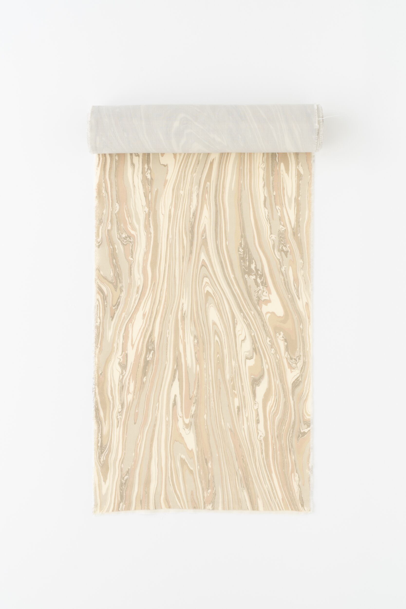 水面に浮かぶアースカラーがゆるやかに流れ混ざり合うような、神秘的な表情の一枚です。