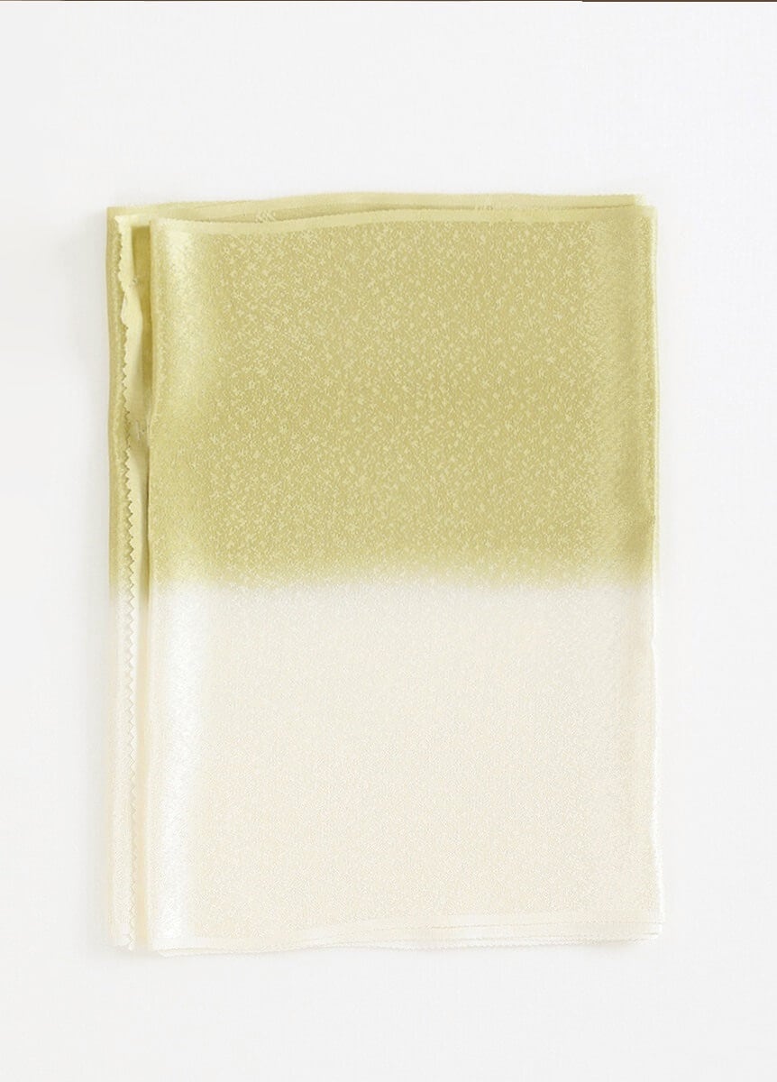 明るいイエローグリーンとアイボリーのツートンカラー。美しいくすみ色をテーマに、合わせやすい配色になっています。コーディネートに合わせてお好きな面をお使いください。