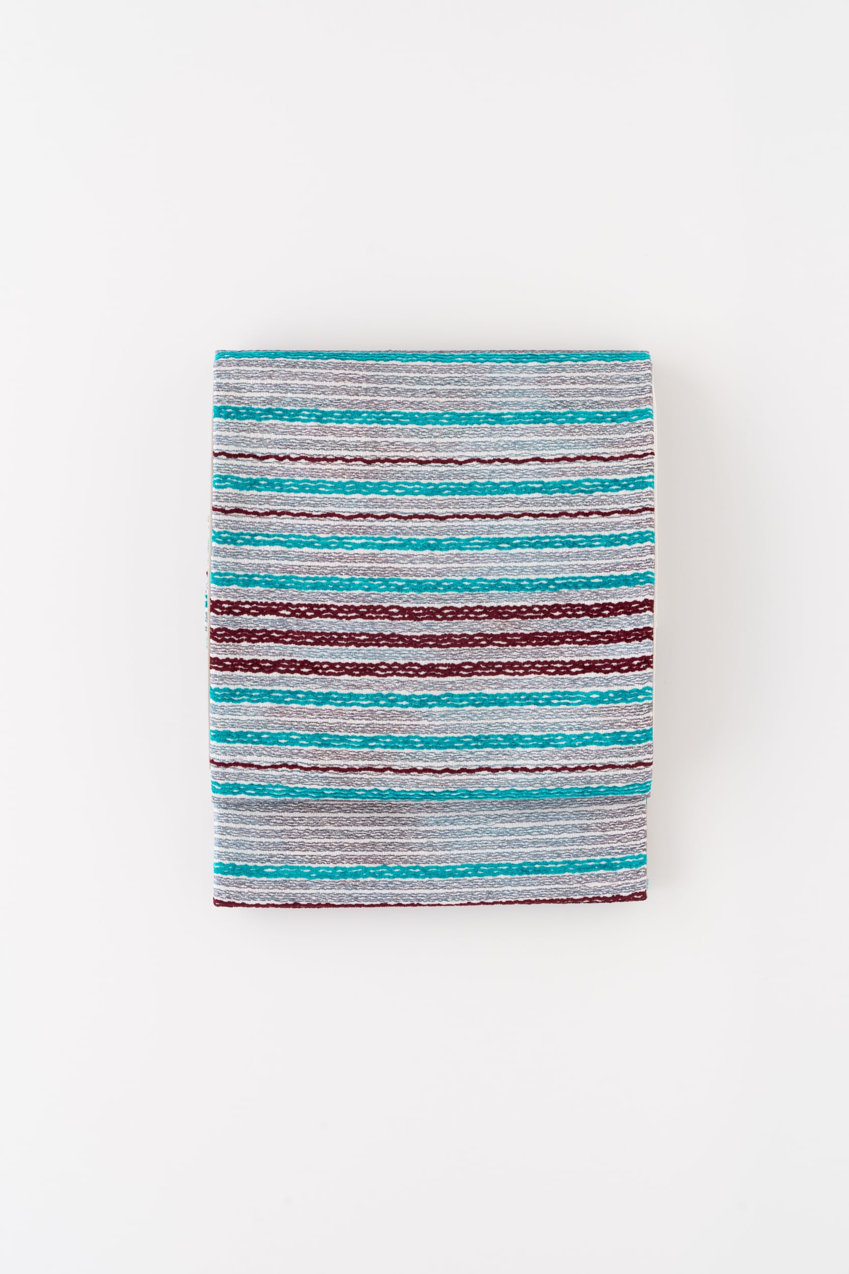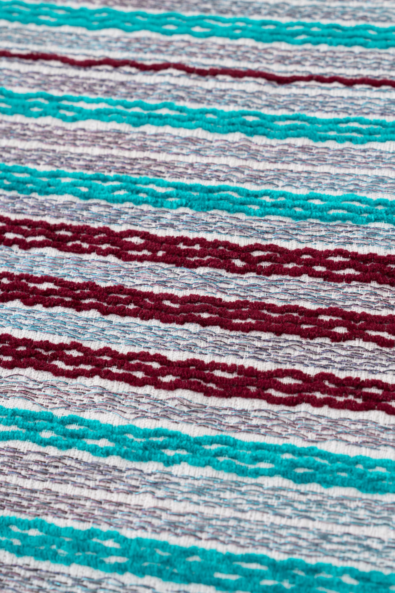 アイボリーの地色部分にはカラフルなラメ糸を一緒に織り込むことで表面に凸感が生まれ、モールメラメが生み出す表情は
