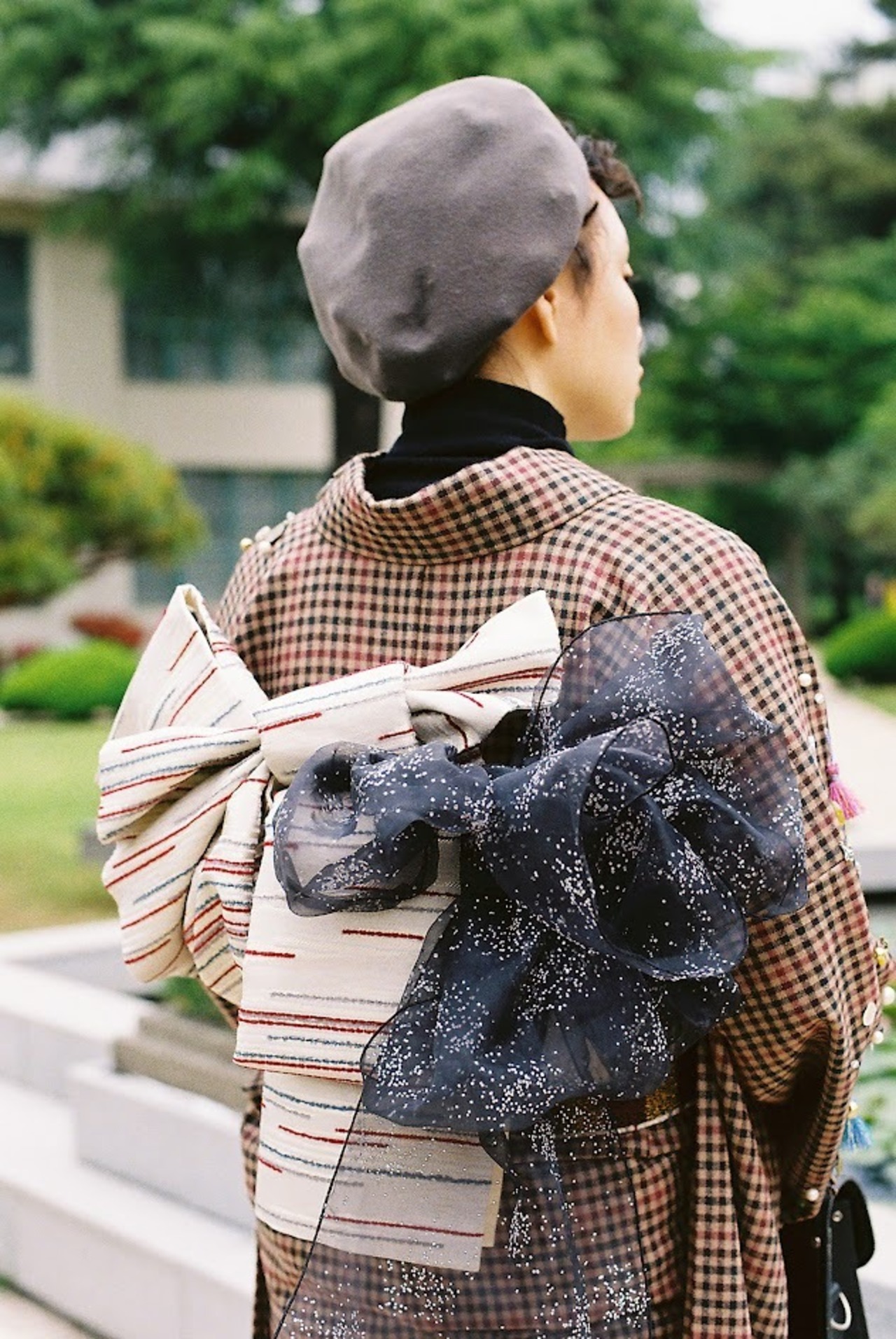 たっぷりとした長さがあるため華やかな変わり結びもでき、カジュアルな装いでは二重太鼓のしゃれ袋帯としてもお楽しみいただけます。