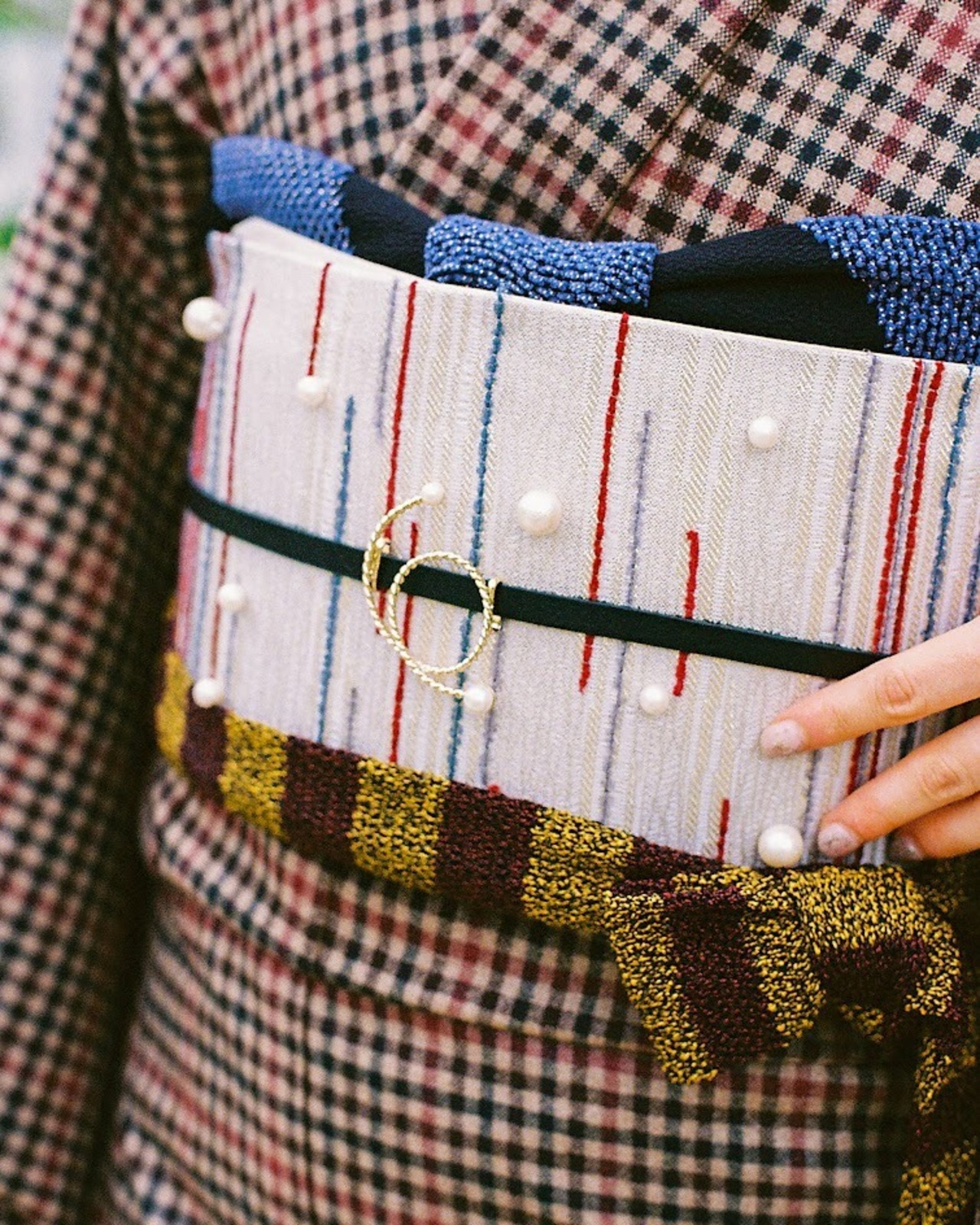 さらに、その上にパールを添えることで立体感が生まれ特別な印象の帯に仕上がりました。