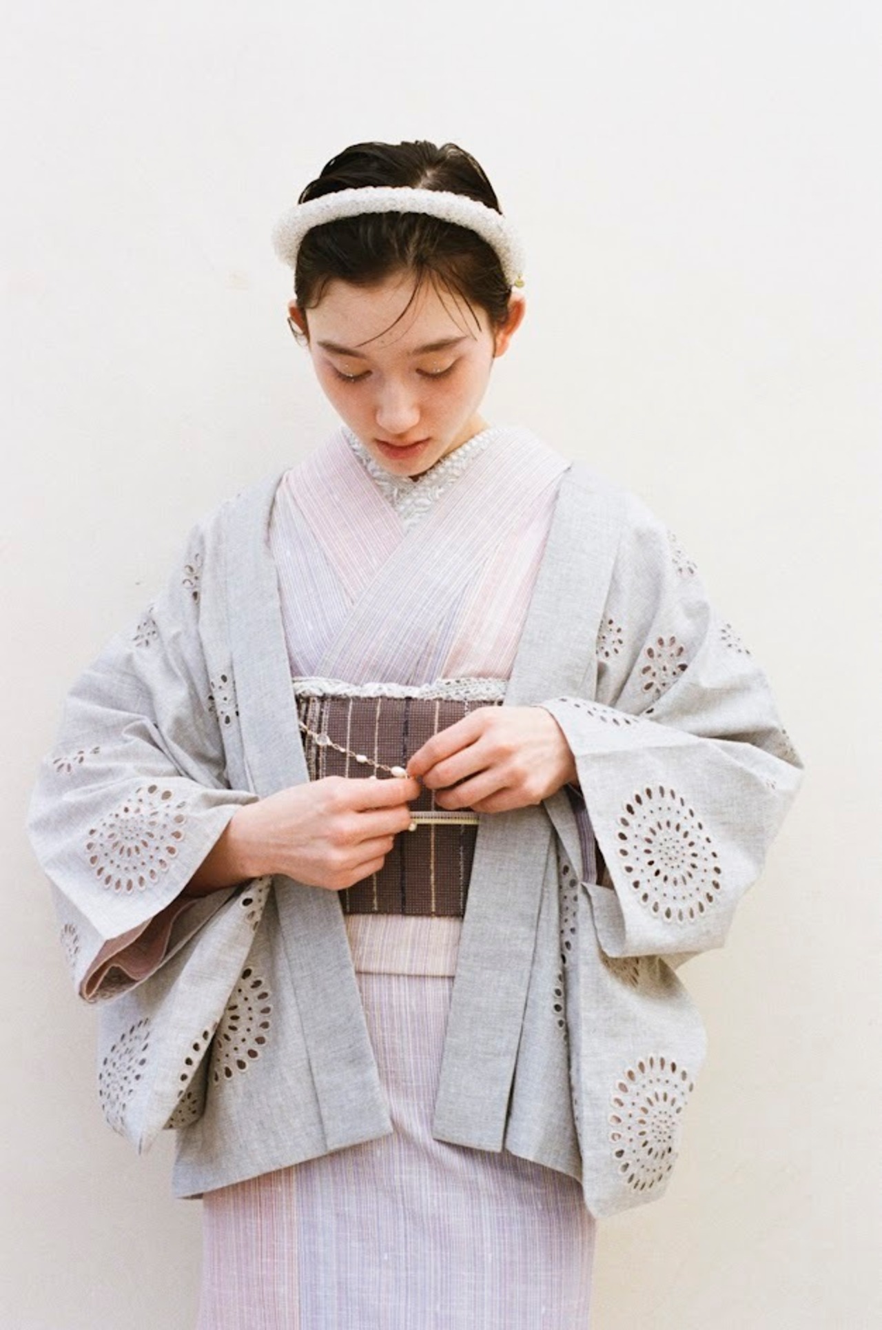 お揃いの半衿と合わせてのスタイリングがオススメ。季節を問わずお使いいただけます。