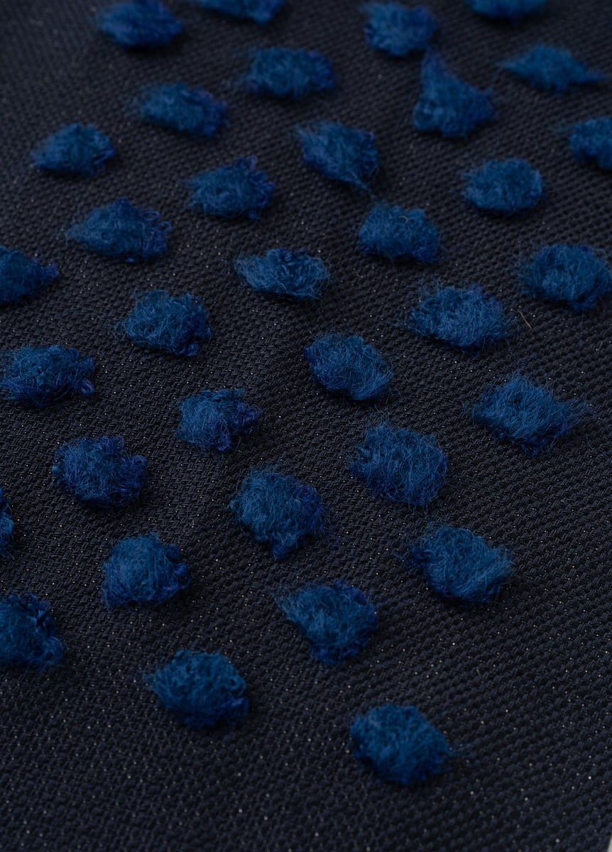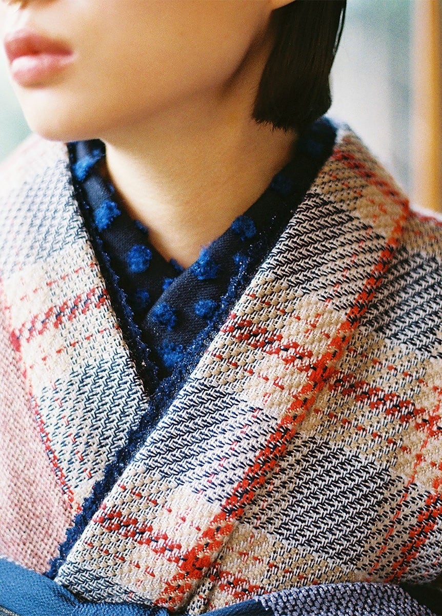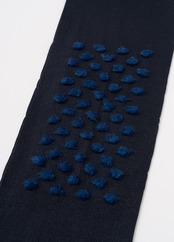起毛させたサガラ刺繍を生地と同系色の糸で施しているため、様々なきものに合わせやすいデザインです。立体感のある刺繍が衿元のアクセントに。きらりと輝き、振袖やドレスアップする際のスタイリングにもお使い頂けます。