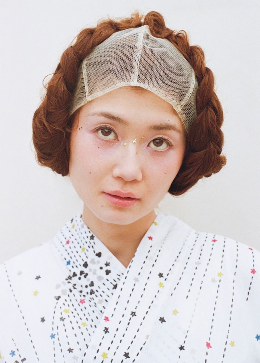 This yukata features an adorable roller-stamp–style pattern.