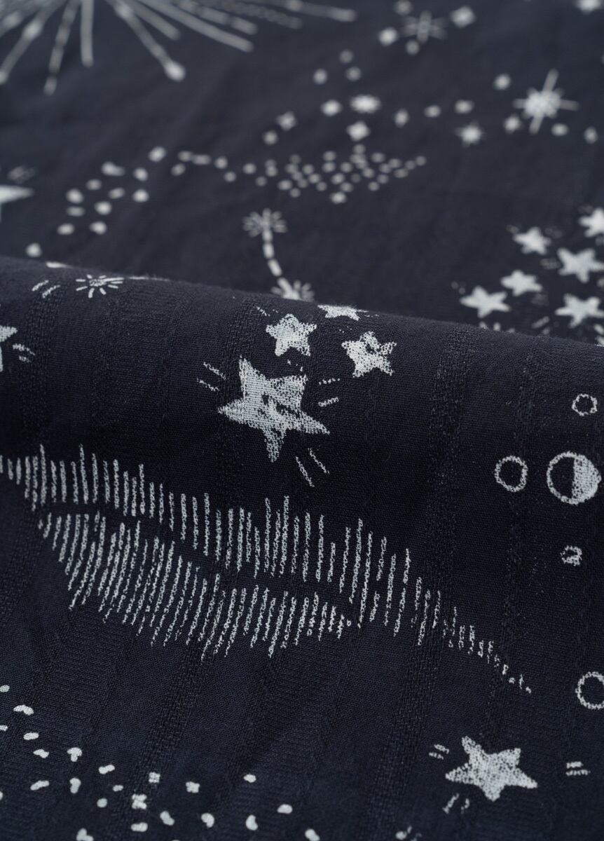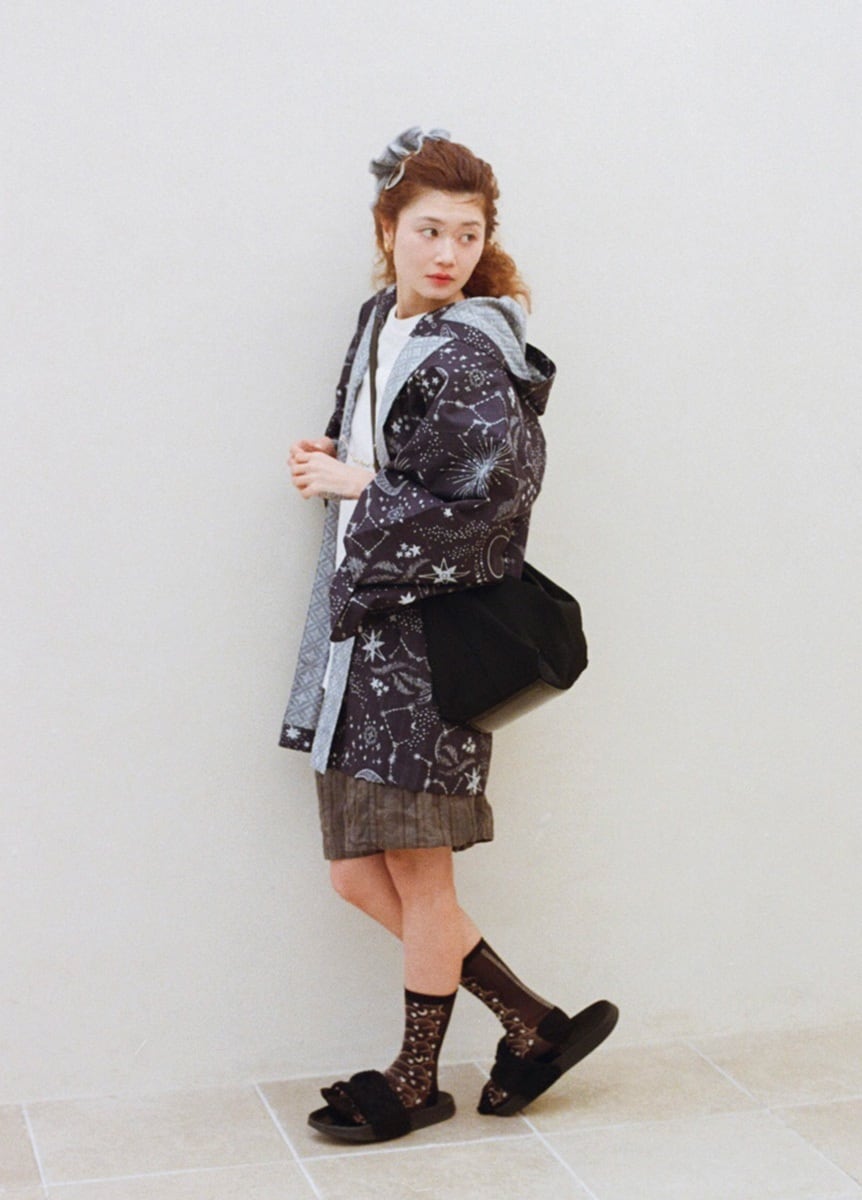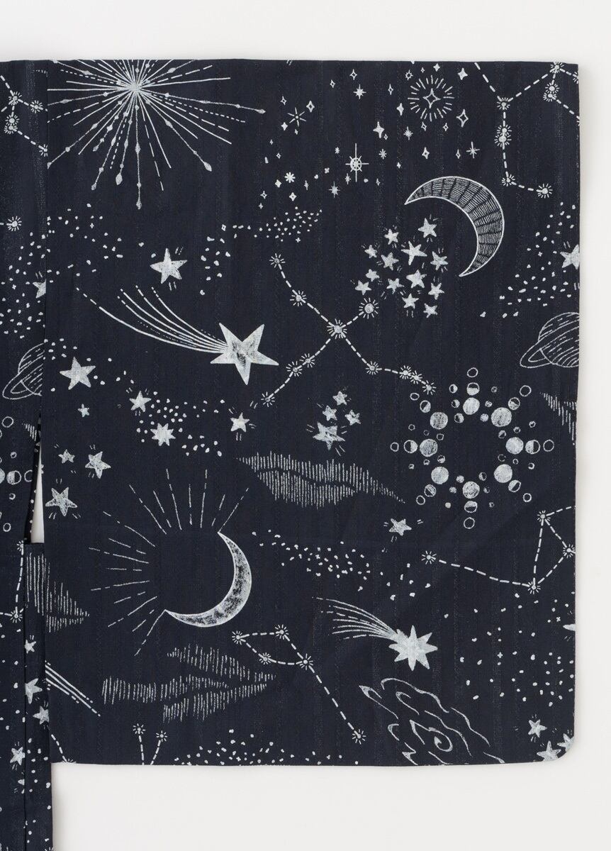 The design combines astronomical charts reminiscent of blackboard drawings with majolica tile–inspired motifs, dyed in classic yukata colors. The reversible fabric allows you to choose which side’s pattern to display, letting each wearer enjoy a personalized, original look—something ARCH cherishes.