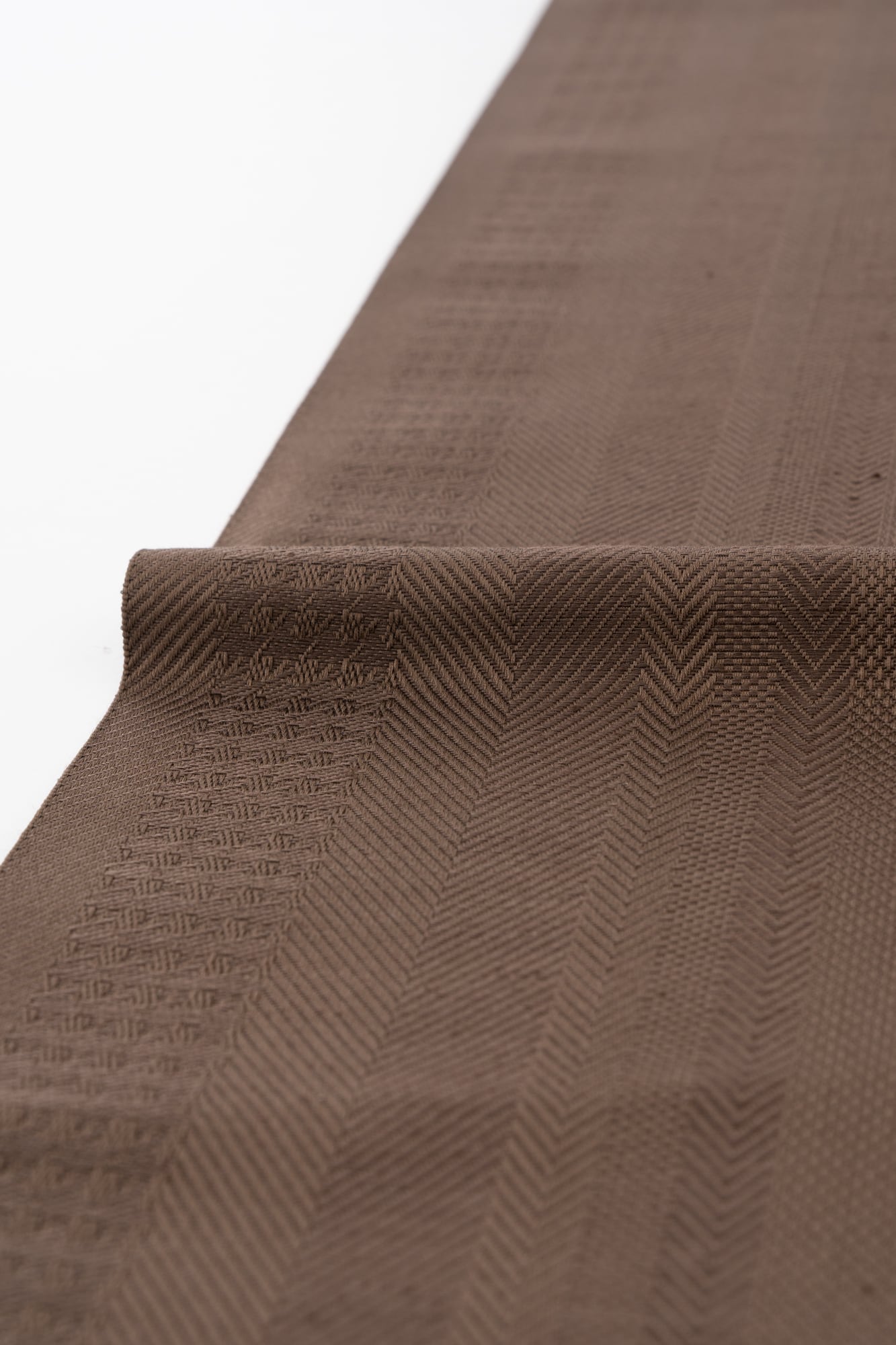 ヘリンボーンや千鳥格子など様々な織模様がミックスされたシンプルな柄のため、飽きが来ず永くお使い頂けます。博多の糸島で織り上げました。