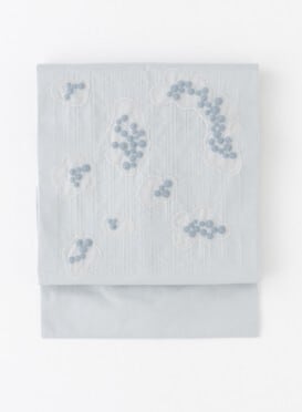 名古屋帯 くも刺繡 / blue gray