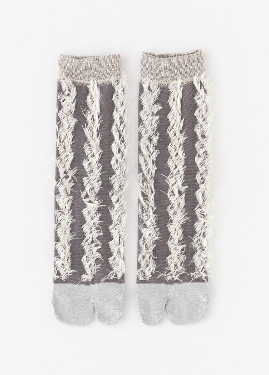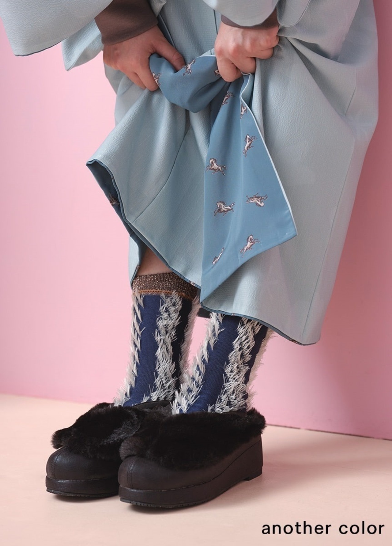 毛足をわざと長く出した冬らしい素材感。本来ソックスの裏面となる糸を長く出すように織り、表面としてデザインされています(届きましたらぜひ裏側もご覧ください)。