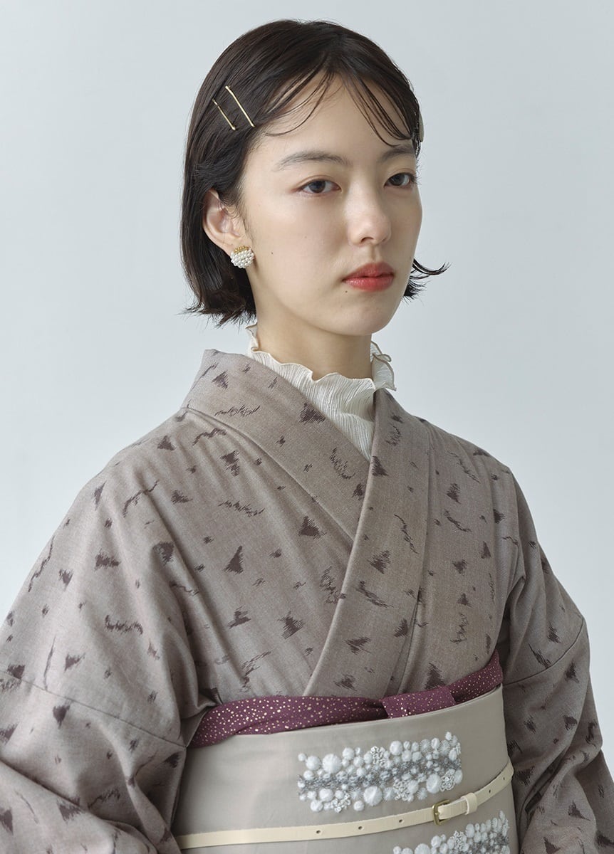 本牛革を使用し、使えば使うほど柔らかさと艶感が出てきます。革ならではの経年変化が楽しめる帯締です。本革は伸縮性が高いため、伊賀の組紐のような締まり感があります。バックルは主張が激しくなり過ぎない真鍮を使用し、お太鼓裏に回すことができるため、帯留を通すことも可能。季節を問わず、永くお使いいただけるアイテムです。