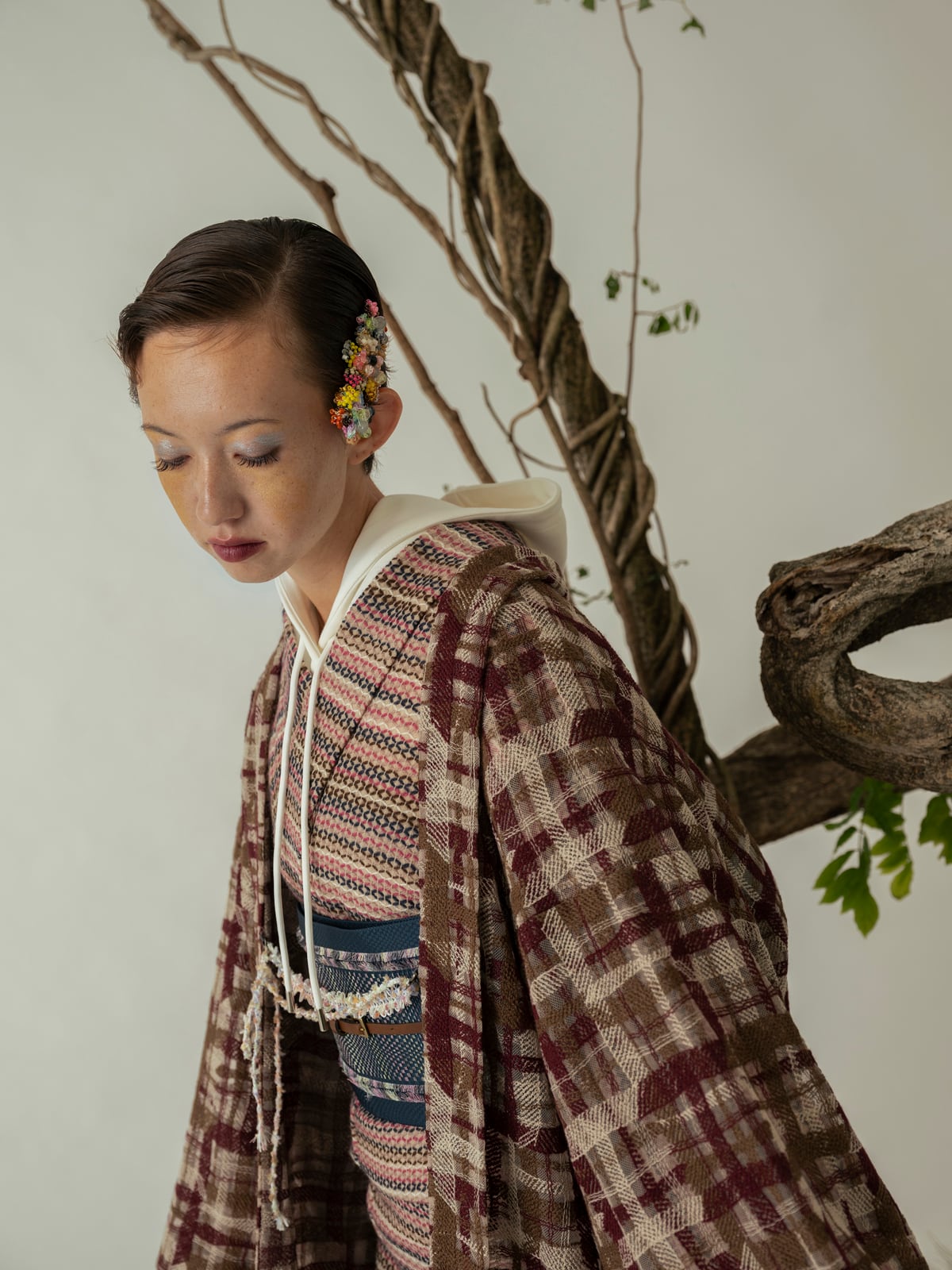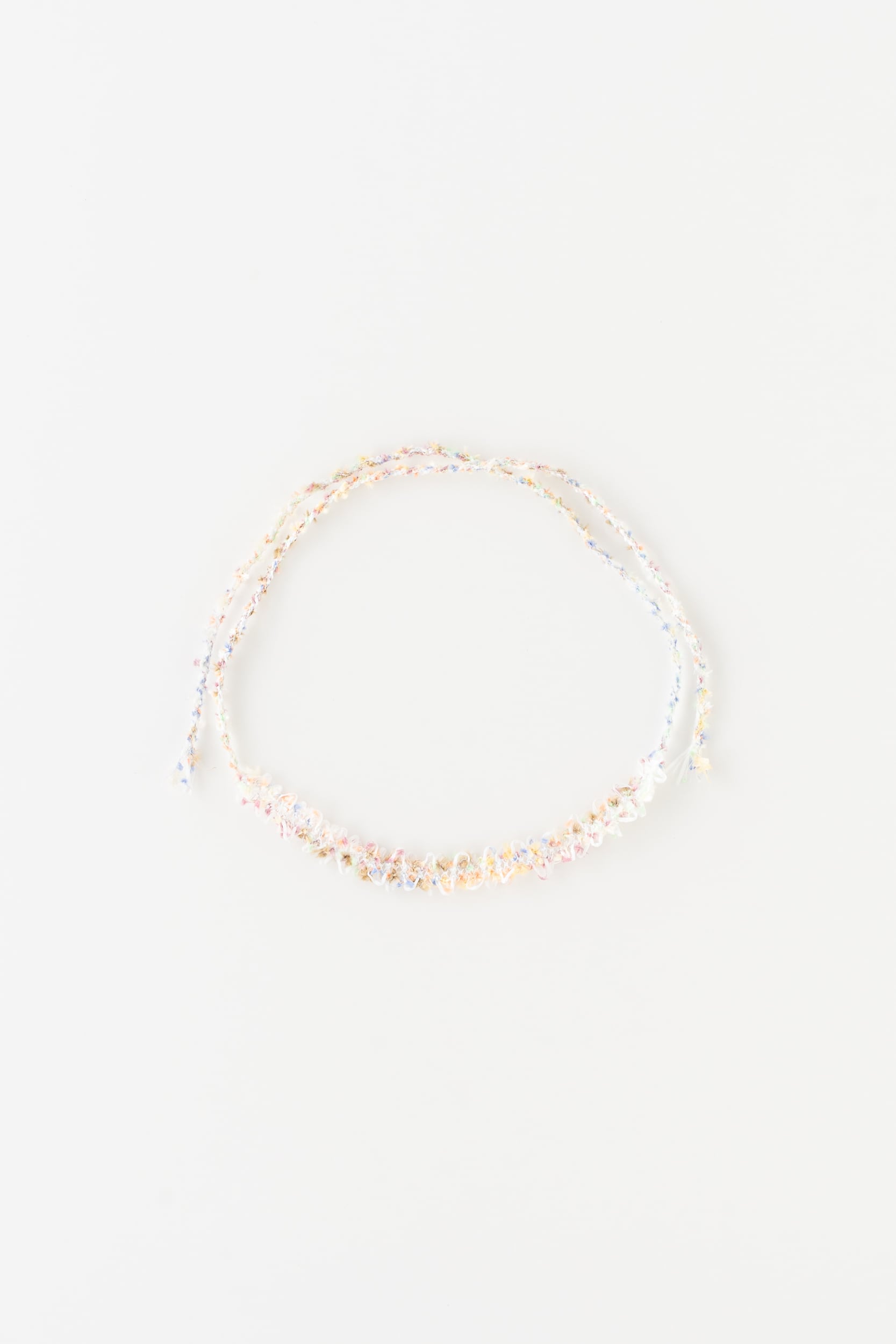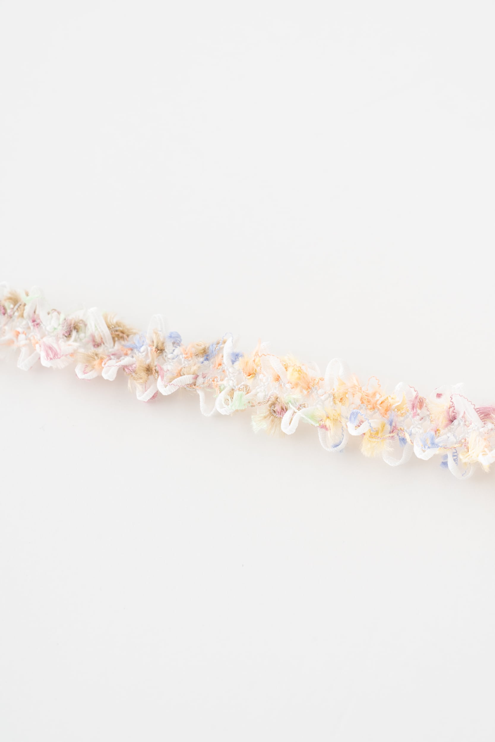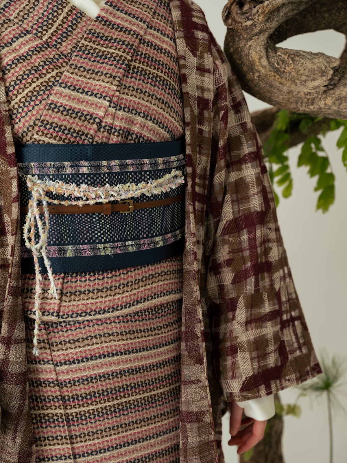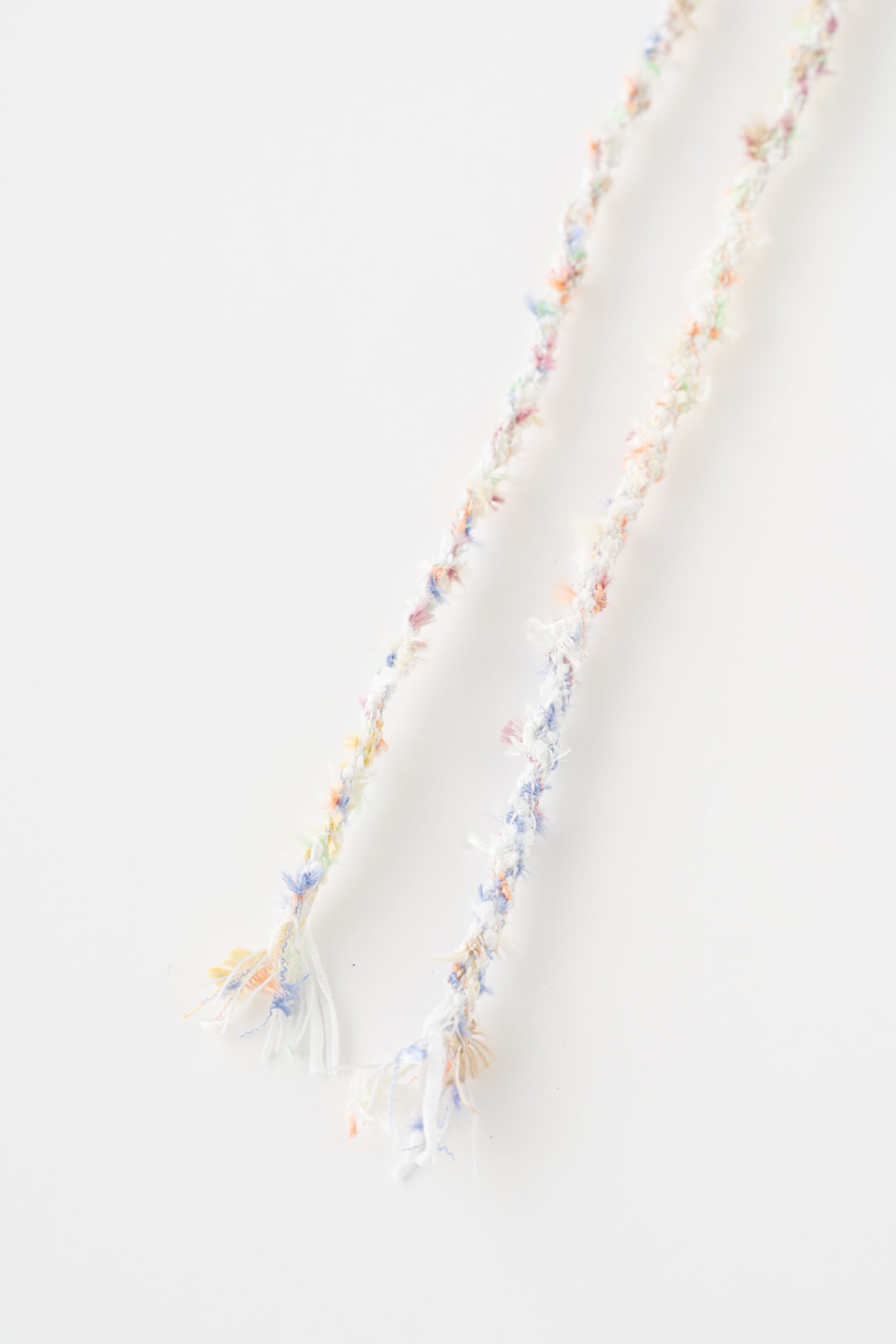 トーションレースの羽織紐。レースの編み感は、素朴でほっこり感のある羽織やきものにも統一感が出てなじんでくれます。ベースの糸はシンプルですが、カラフルな糸を合わせていて糸そのものも可愛い。⾧さもあるので、羽織紐に留まらず、帯締め・髪飾り・飾り紐など、自由な使い方ができます。juncoさんの羽織紐と比較して、ベースはシンプルで上品さもありつつ、カラフルな糸の組み合わせとレース素材でかっちりしすぎないところが日常に取り入れやすいところが魅力です。羽織紐という伝統的なアイテムを元に、飾り紐としても使用できる日本のものづくりをアップデートした羽織紐です。