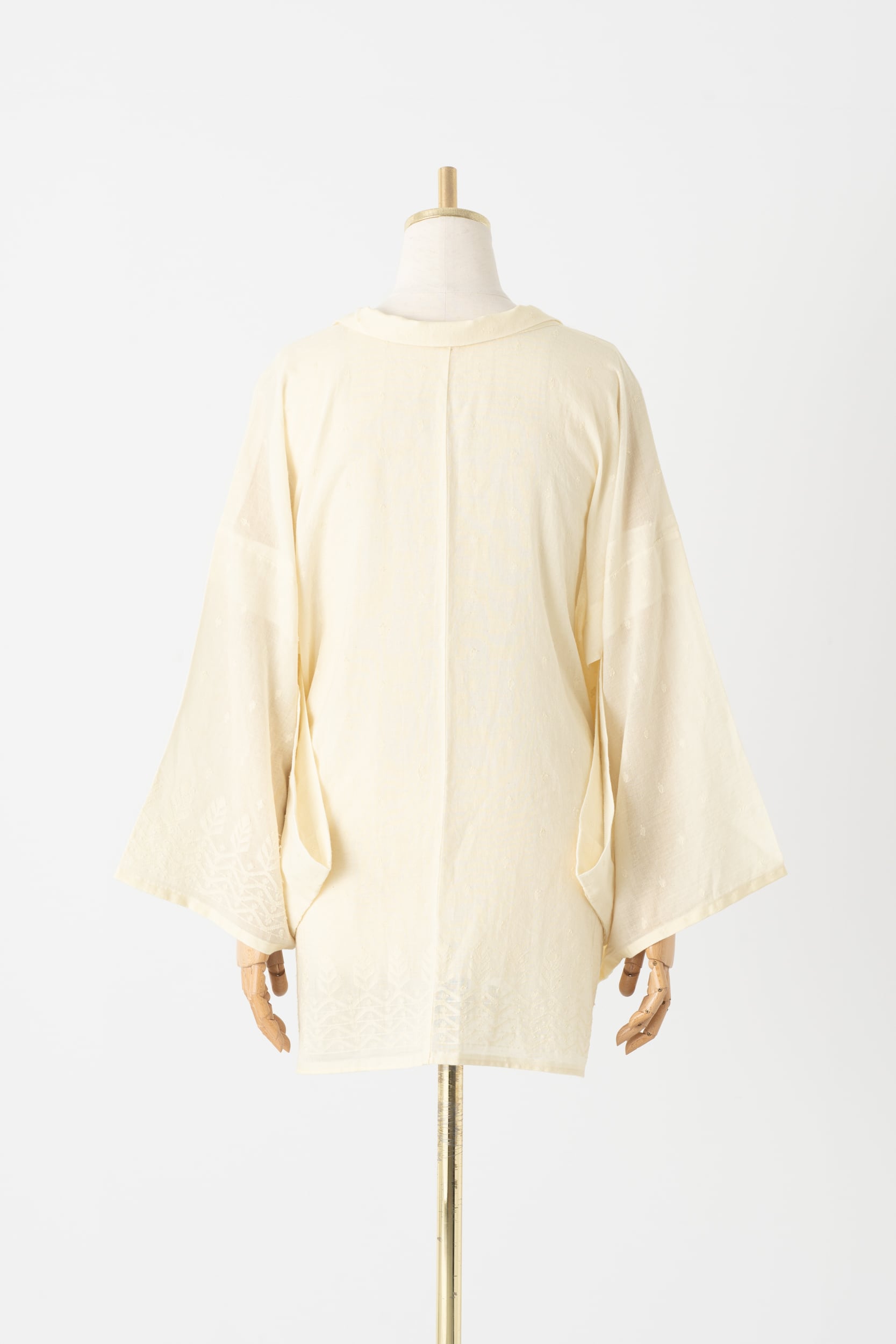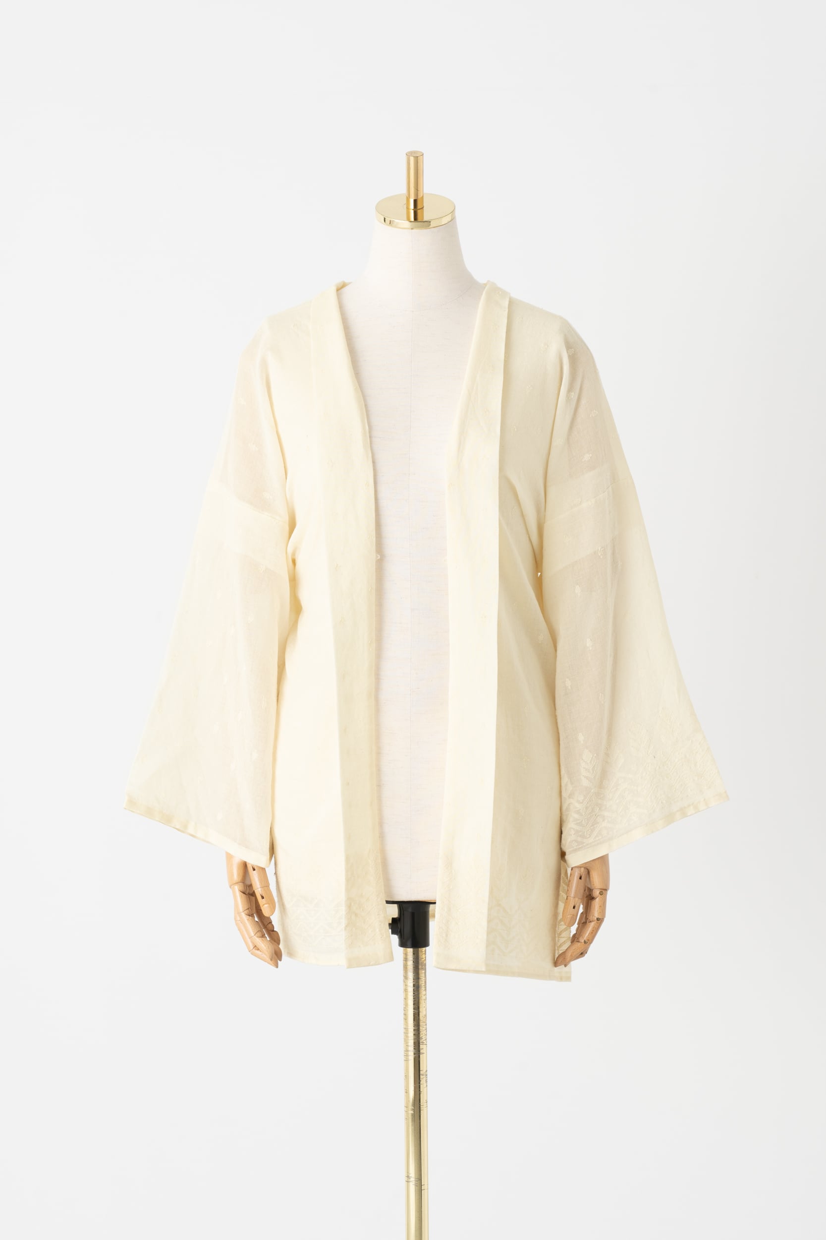 インド・ベンガル地方に300年受け継がれてきた極めて精緻な手織りの生地、ジャムダニ織りを羽織に仕立てました。