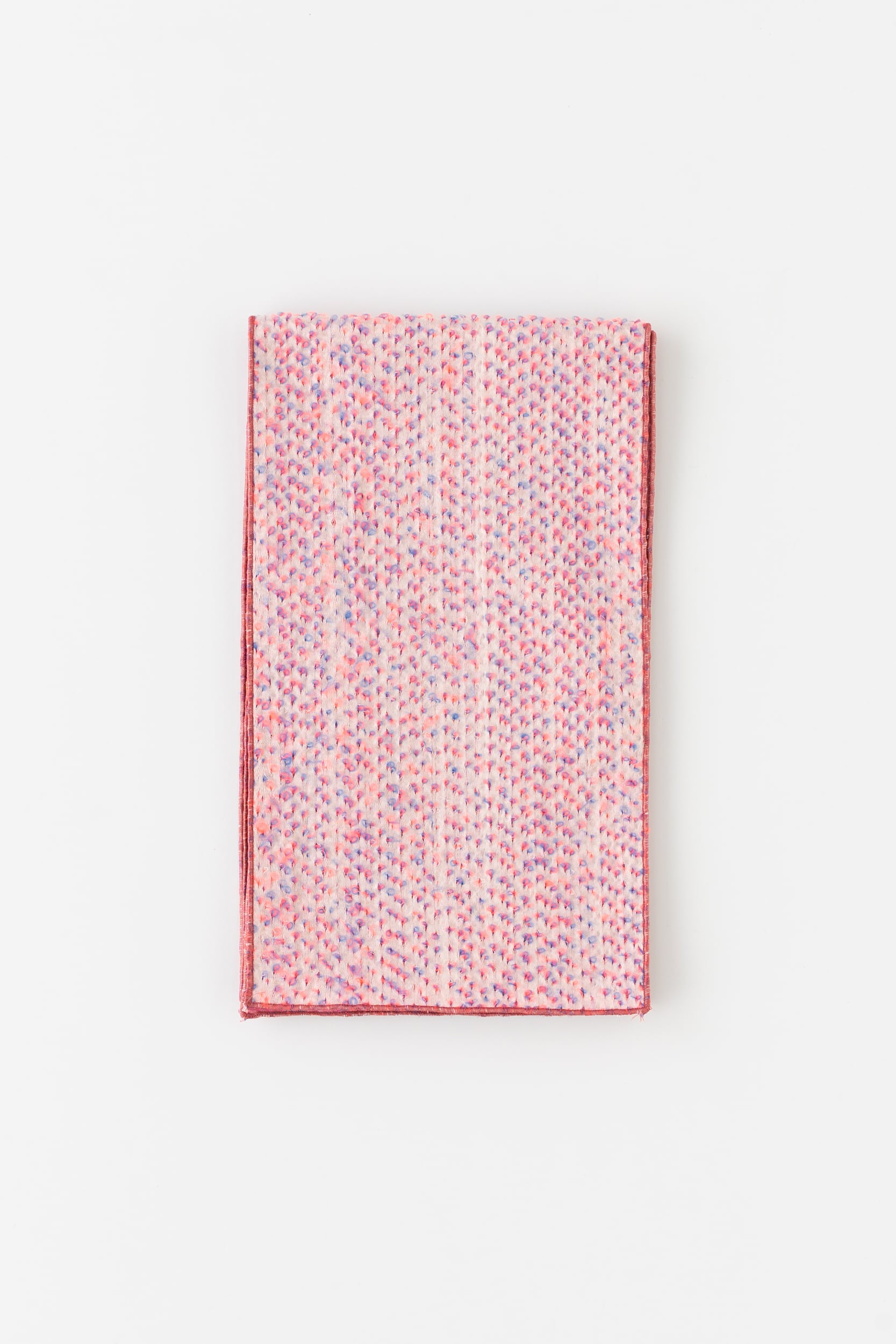 3 枚の生地を重ね織りし、下 2枚の生地に使用している糸を針で引き出すことで、今までにない個性的なアイテムに仕上がりました。