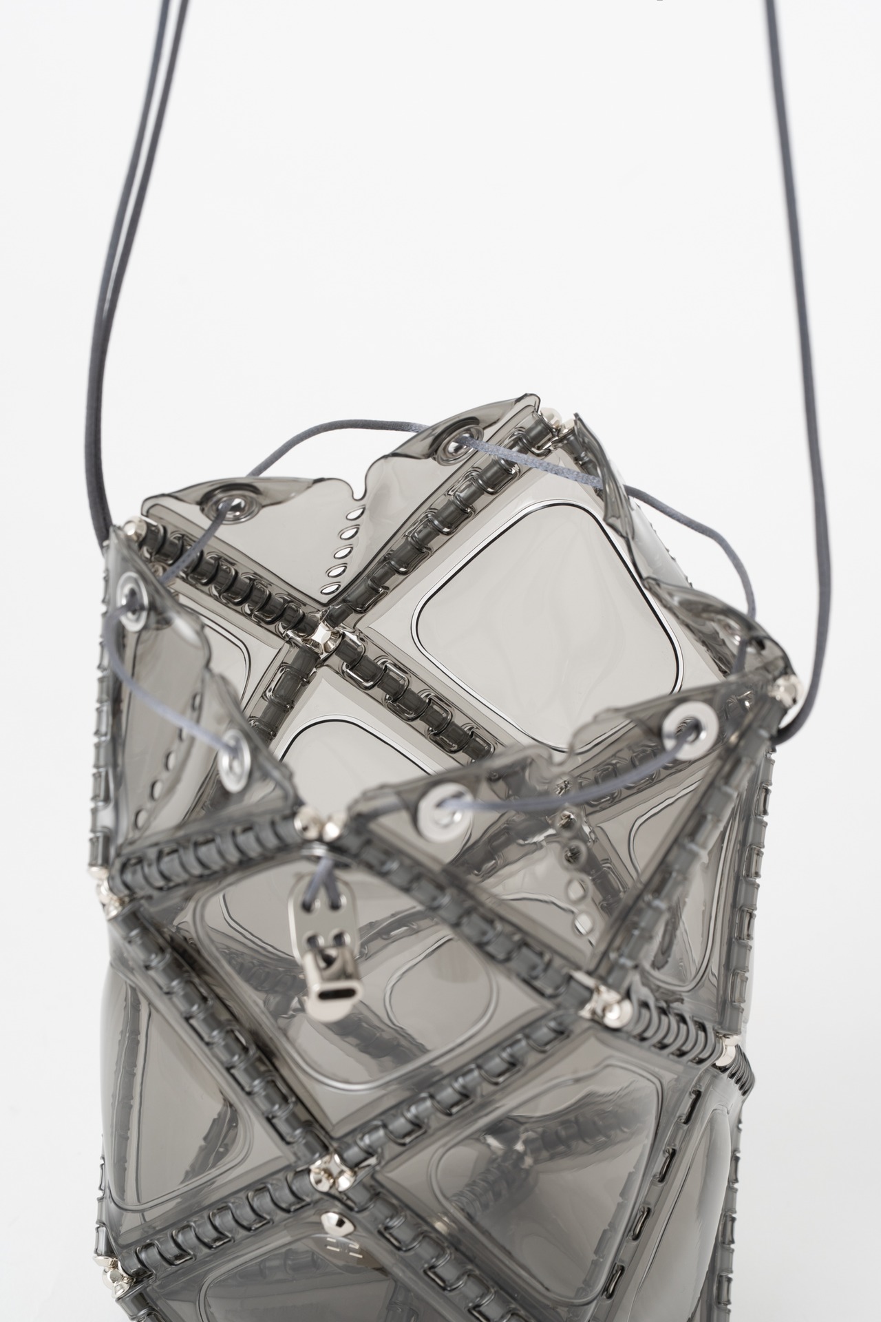 PVC素材ならではの透け感と艶は、ほどよく上品さをプラスしてくれるので、日常のスタイリングから、フォーマルな場面にもおすすめです。