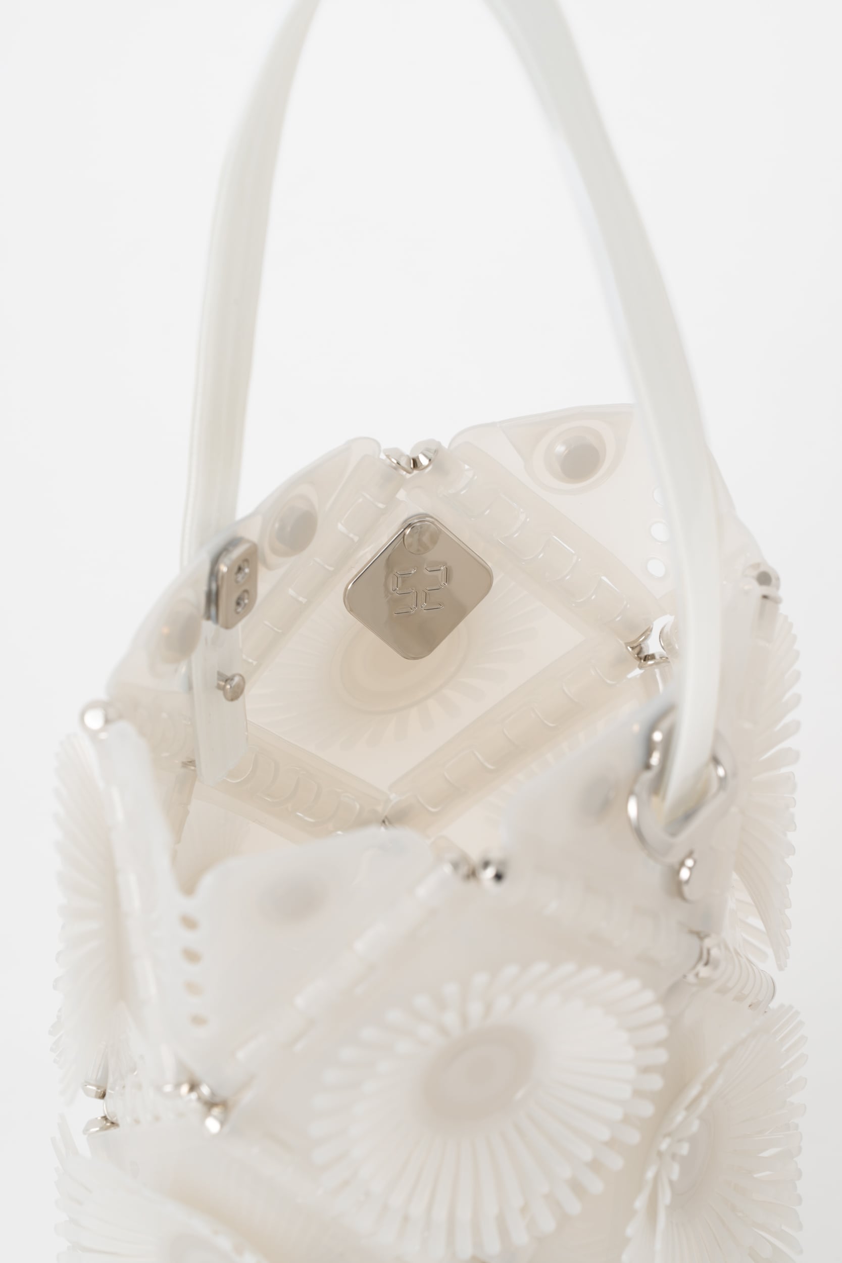 PVC素材ならではの透け感と艶は、ほどよく上品さをプラスしてくれるので、日常のスタイリングから、フォーマルな場面にもおすすめです。