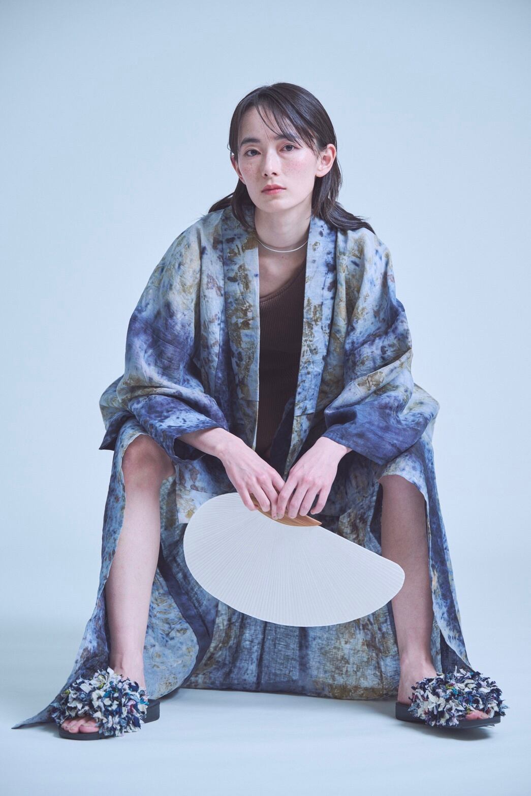 和紙には、300年以上の歴史を持つ名尾手すき和紙を使用。楮ではなく、自家栽培の梶の木を原料とし、長い繊維が絡み合うことで、薄くても丈夫に仕上がっています。障子にも使われている薄手の和紙は、やわらかく通る光が、素材そのものの美しさを引き立てます。あおぐだけでなく、飾ることで空間に涼やかな趣とやすらぎをもたらします。